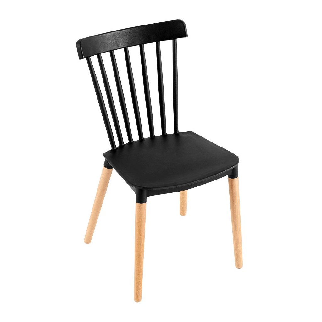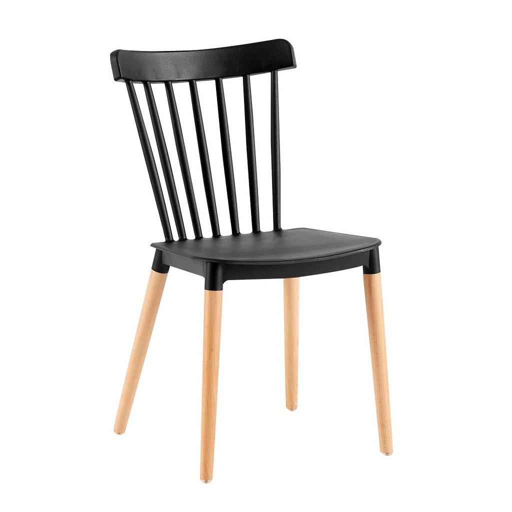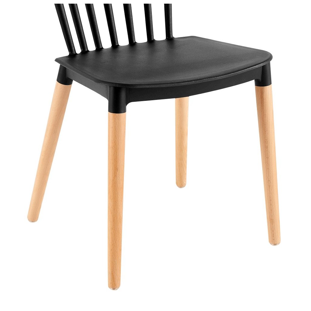Jedálenská stolička ZOSIMA v čiernej farbe kombinuje moderný plast s masívnymi bukovými nožičkami. Ideálna do každej jedálne, nosnosť 100 kg, rozmery 54x44x83 cm. Dodávaná v demonte.