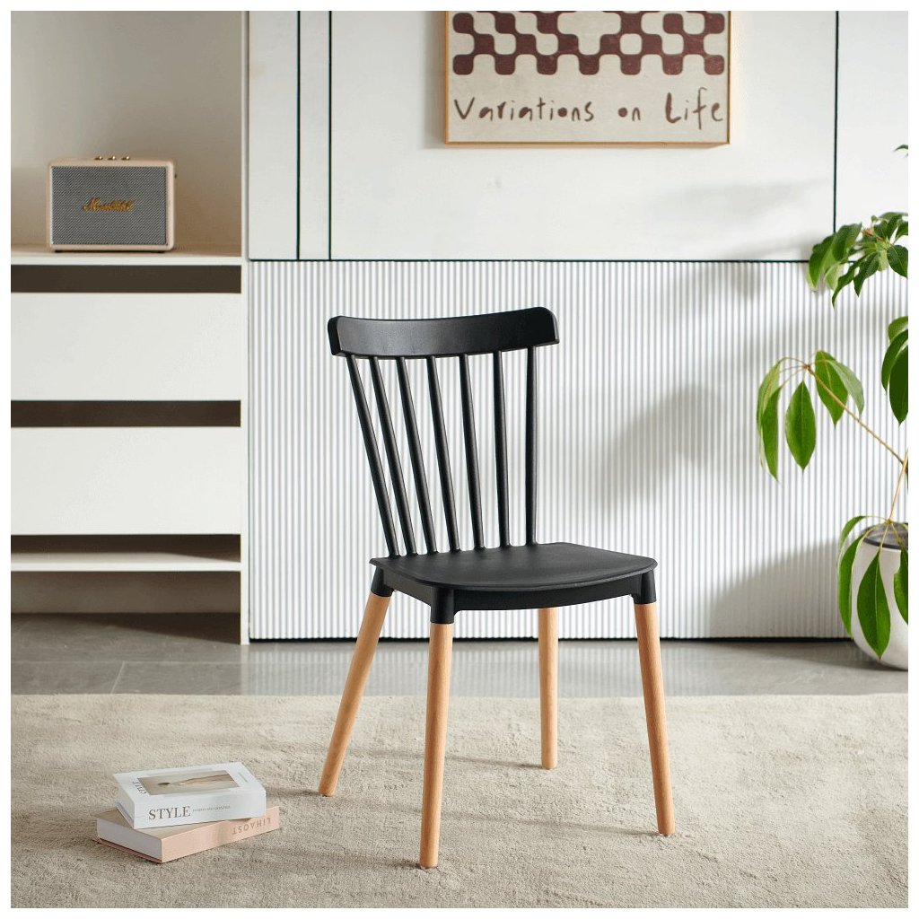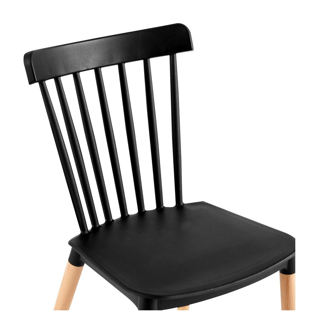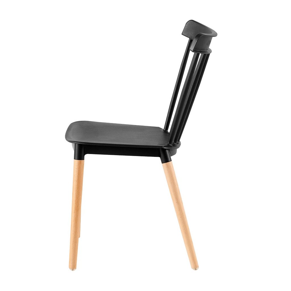 Jedálenská stolička ZOSIMA v čiernej farbe kombinuje moderný plast s masívnymi bukovými nožičkami. Ideálna do každej jedálne, nosnosť 100 kg, rozmery 54x44x83 cm. Dodávaná v demonte.