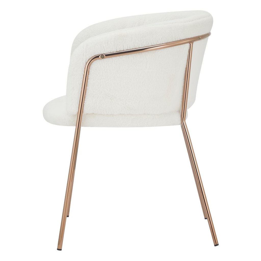 Jedálenské kreslo ADIMAR s umelou kožušinou je dokonalým spojením elegancie a moderného dizajnu, ktoré vnesie do vašej jedálne alebo kuchyne nádych luxusu. Jeho biela farba Ivory a ružovo zlatý chróm dodávajú priestoru jedinečný štýlový akcent, ktorý zaujme na prvý pohľad.