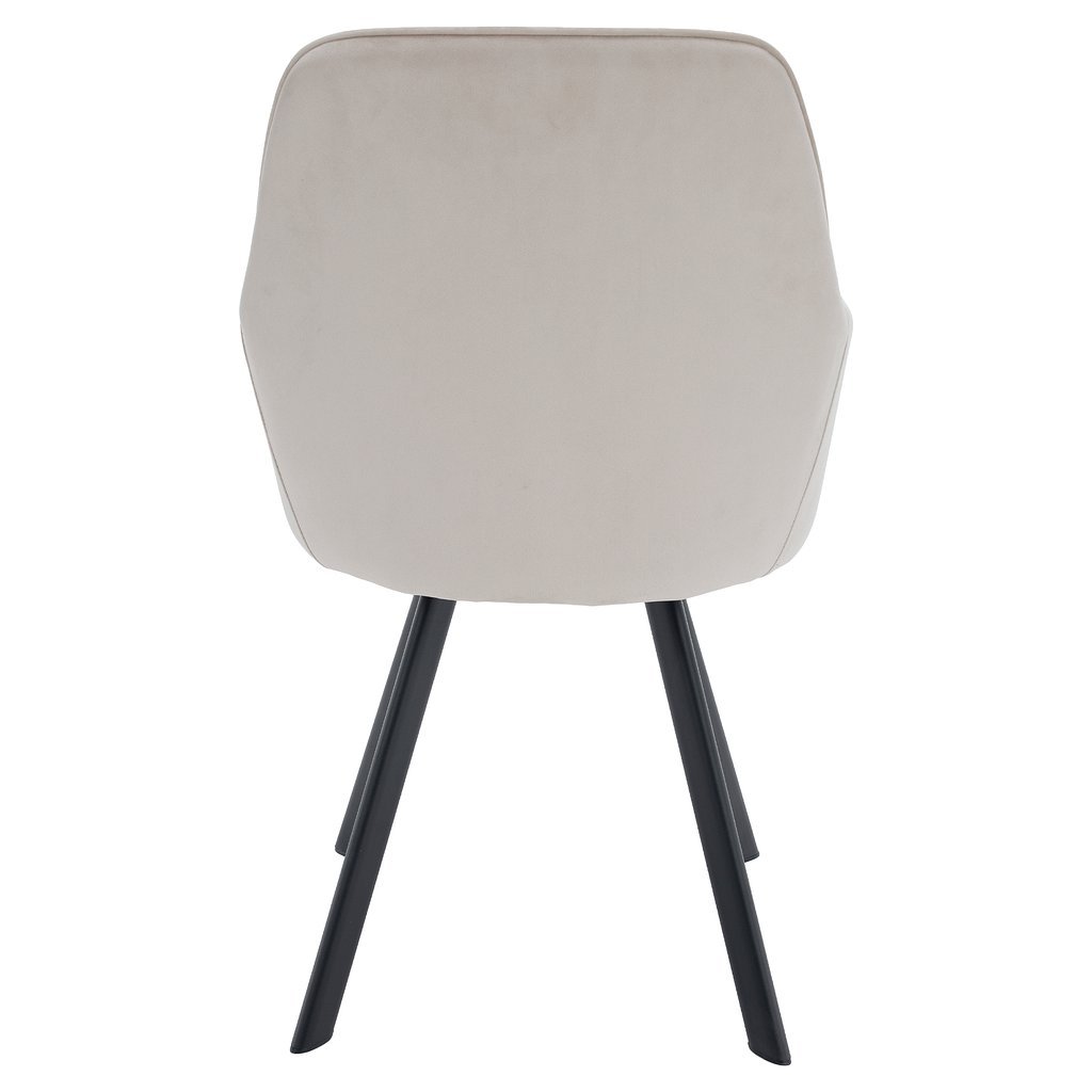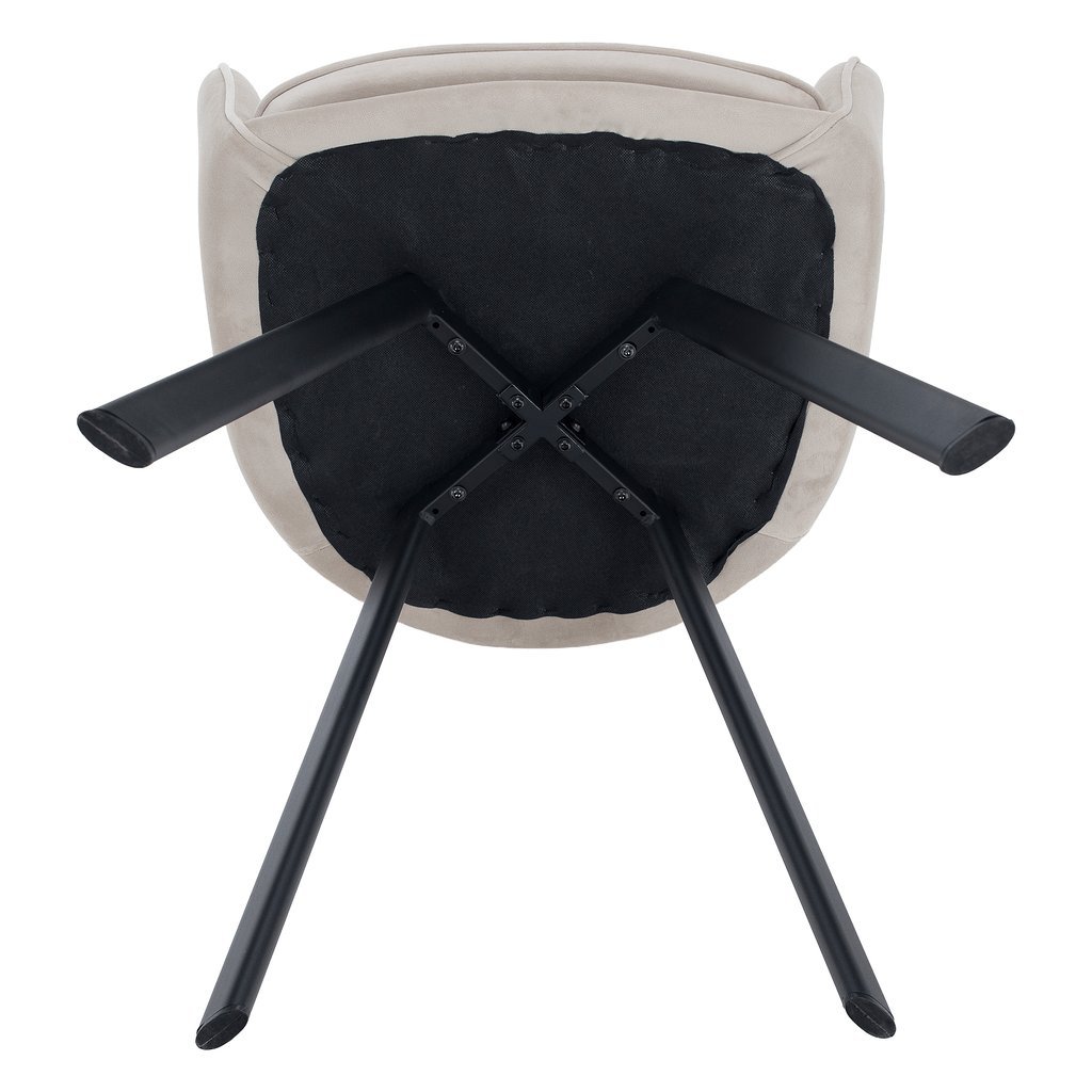 Jedálenské kreslo AURIL v béžovej zamatovej látke prináša štýlový dizajn a pohodlie. Stabilitu zabezpečujú čierne kovové nohy. Komfortné opierky sú dekoratívne prešité. Ideálne do každej domácnosti!