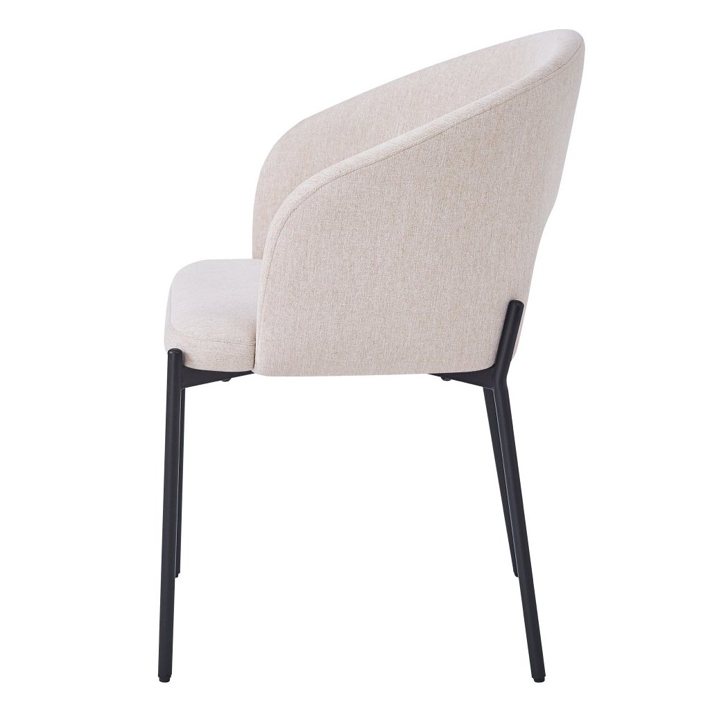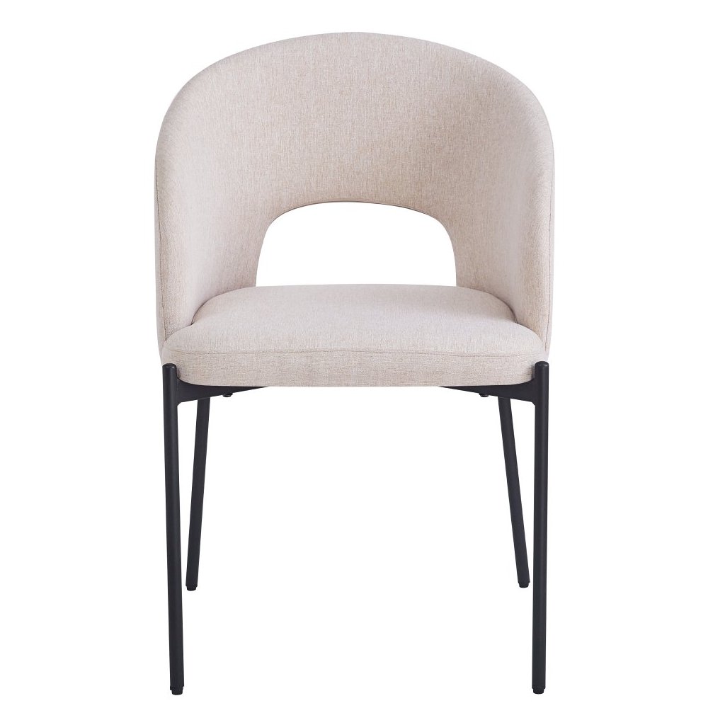 Jedálenské kreslo LONKA v béžovej látke je elegantným doplnkom vašej jedálne. Čierne kovové nožičky zaručujú stabilitu, zaoblené operadlo a opierky poskytujú pohodlie a štýlový vzhľad.