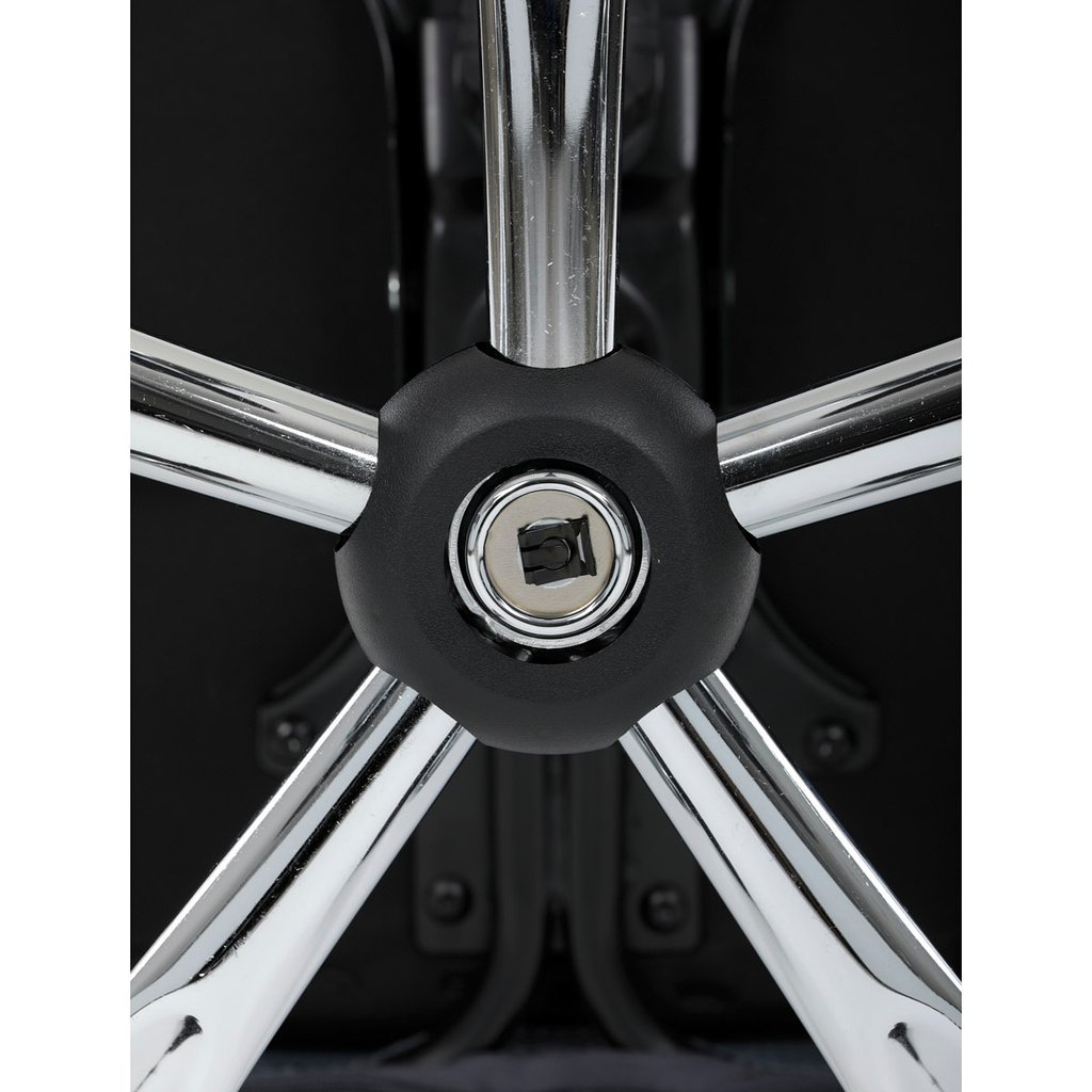 - Chrómový kríž poskytuje stabilitu a moderný vzhľad stoličky.