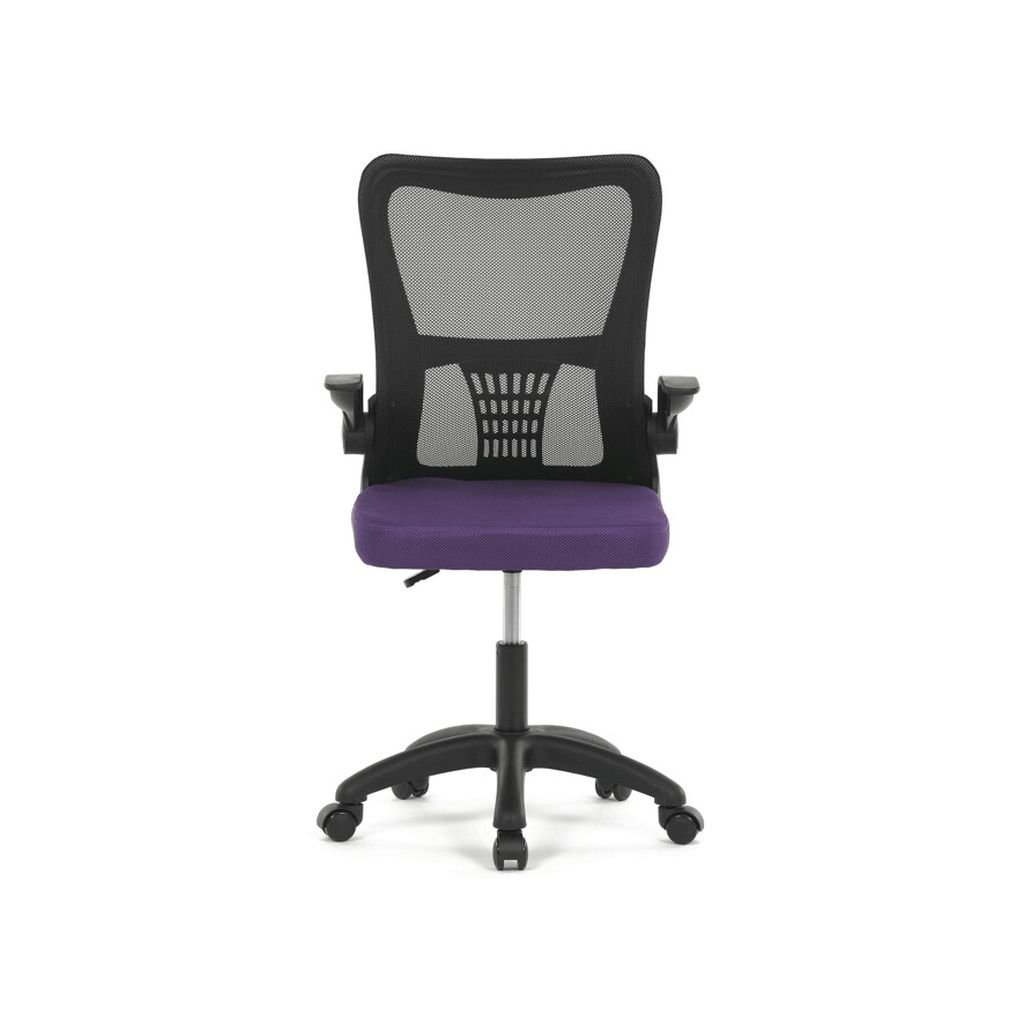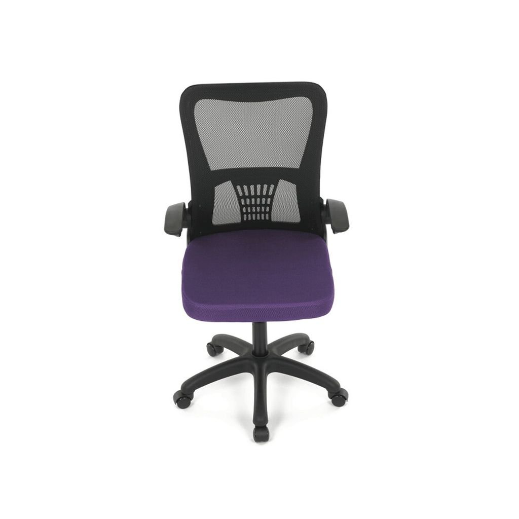 Kancelárska stolička OPTI s fialovou sieťovinou ponúka komfortné sedenie, priedušné operadlo a nastaviteľný sedák. Hojdací mechanizmus a bedrová opierka podporujú správne držanie tela.