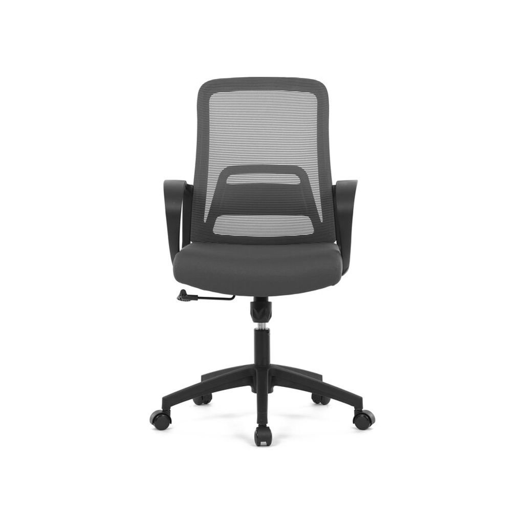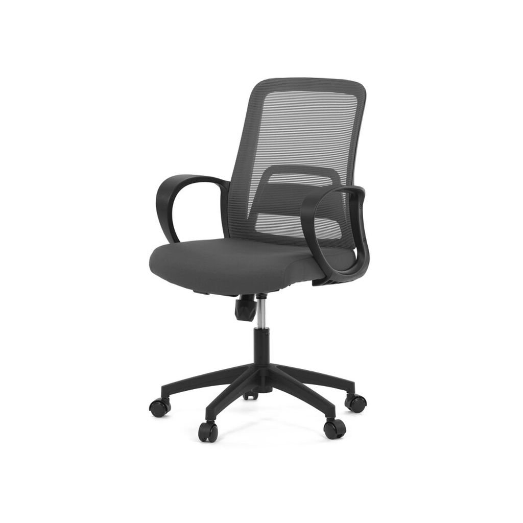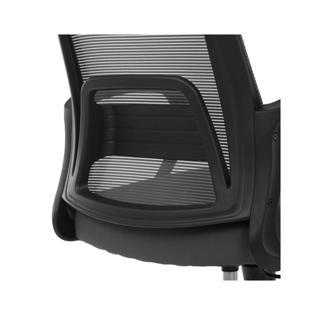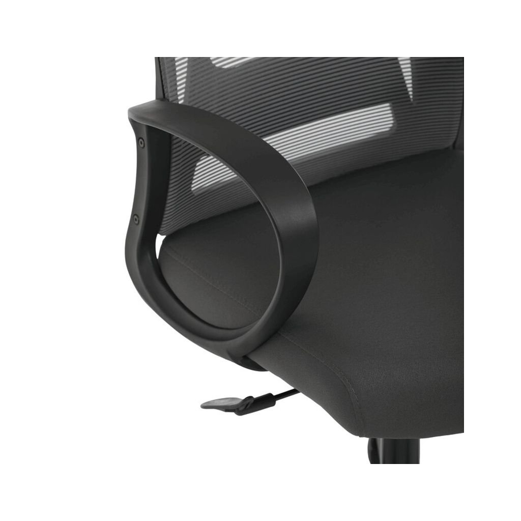 Priedušné operadlo zo sivej sieťoviny podporuje cirkuláciu vzduchu, čo prispieva k komfortu pri sedení. Pevná bedrová opierka poskytuje oporu a zabezpečuje správne držanie tela, čo oceníte najmä pri dlhých pracovných dňoch.