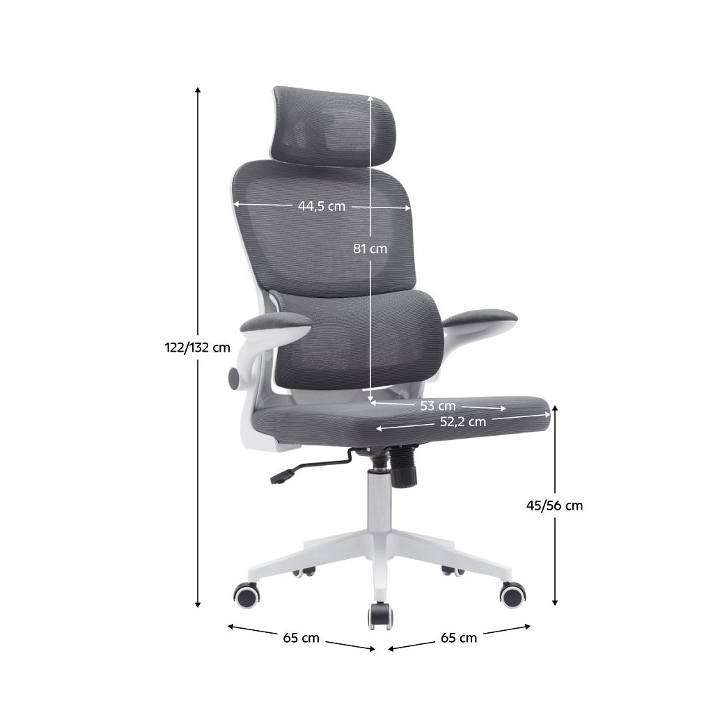 Stolička je vybavená množstvom funkcií, ktoré zvyšujú jej praktickosť. S nastaviteľnou opierkou hlavy a sklápateľnými opierkami na ruky si môžete prispôsobiť svoje sedenie podľa vlastných potrieb. Odolná sieťovina zabezpečuje dobré odvetrávanie, čo je dôležité pre dlhodobé užívanie.