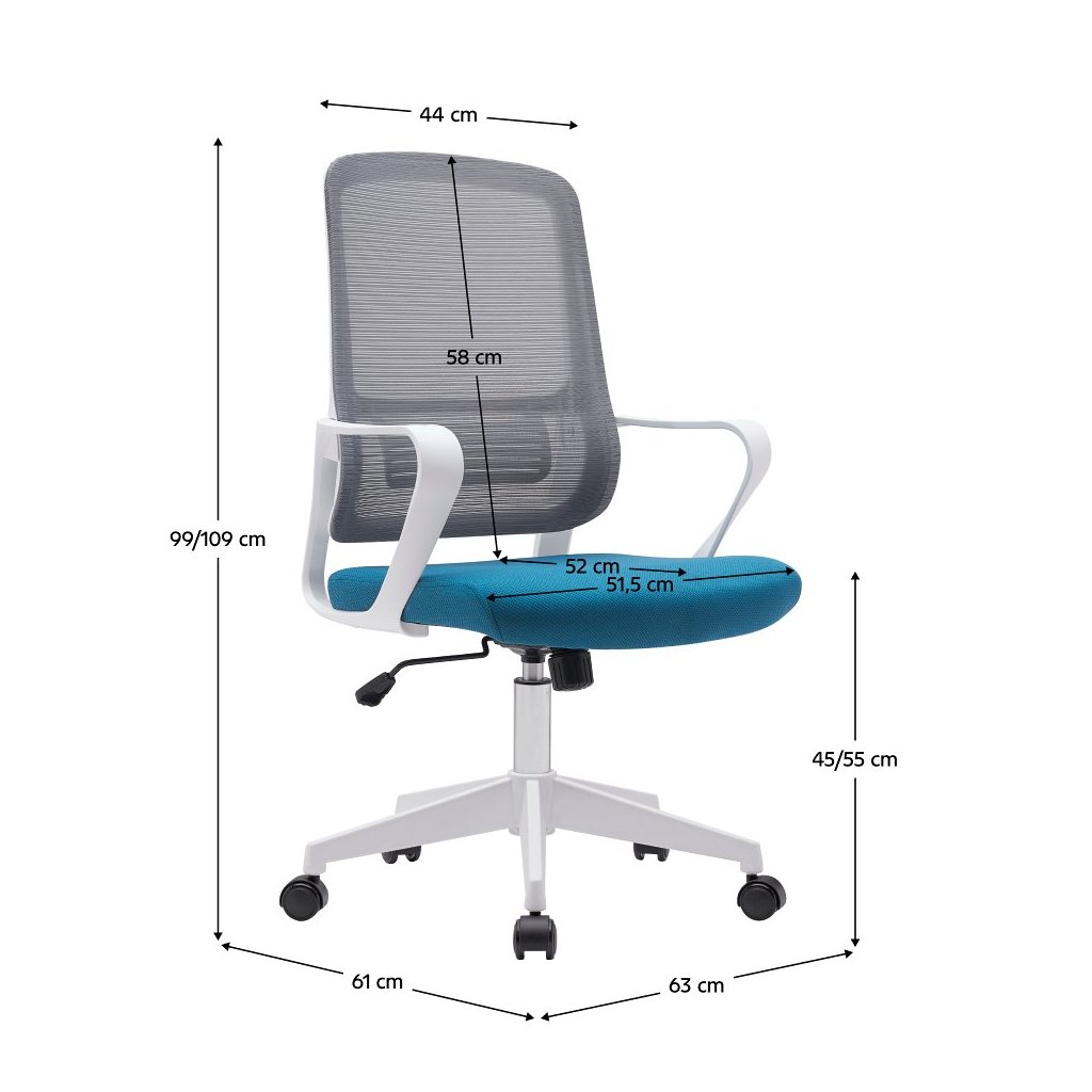 Stolička je čalúnená kombináciou kvalitnej sivej sieťoviny a odolnej petrolejovej látky, čo zaručuje nielen atraktívny vzhľad, ale aj vysokú trvanlivosť. S mechanizmom hojdania a nastavením výšky sedu si môžete prispôsobiť stoličku presne podľa svojich potrieb.