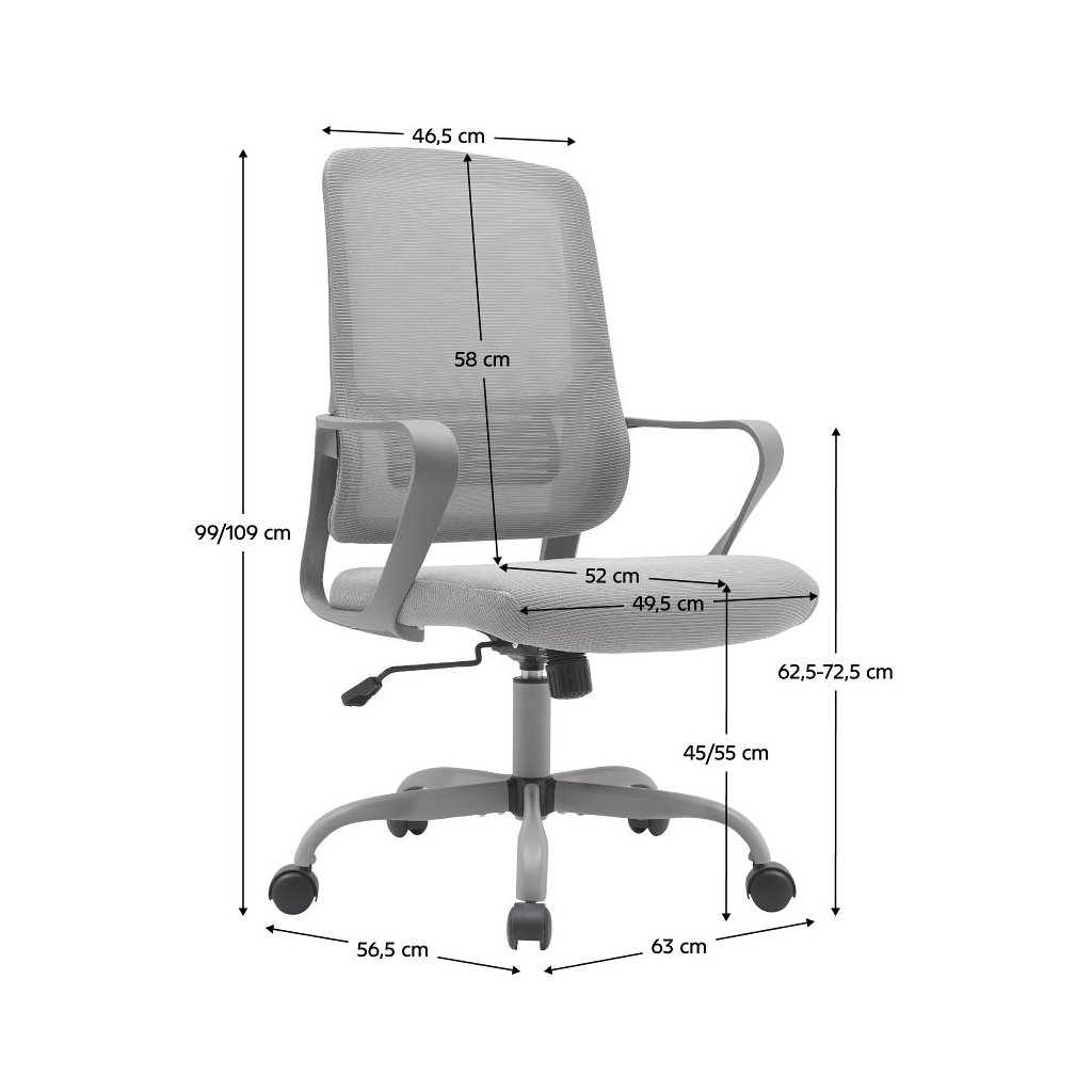 Kancelárska stolička SALOMO v sivej farbe ponúka moderný dizajn a praktické funkcie, ako hojdanie a nastavenie výšky. Stabilná kovová podstava a odolná sieťovina zaisťujú komfort. Nosnosť 110 kg.