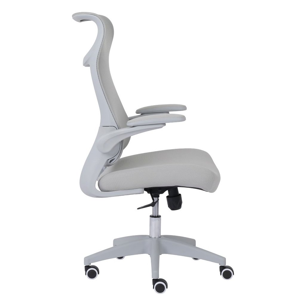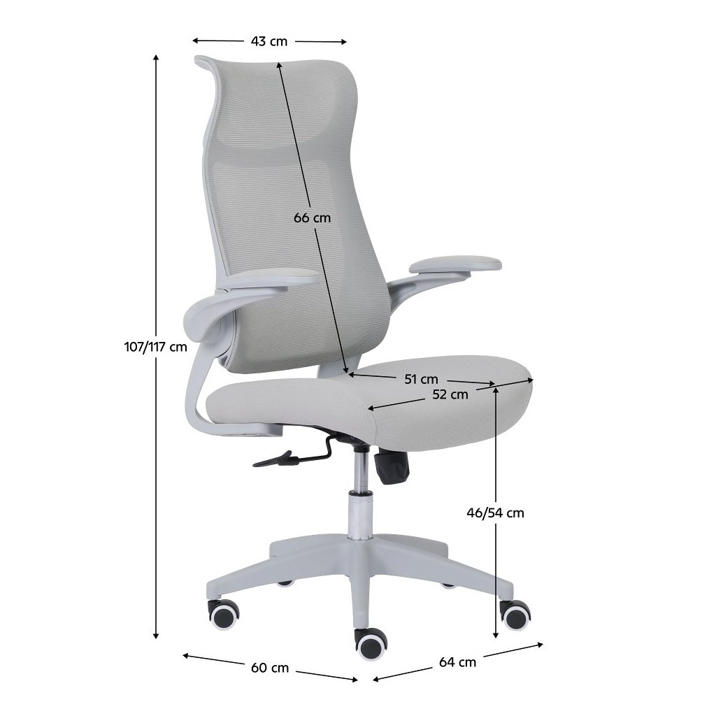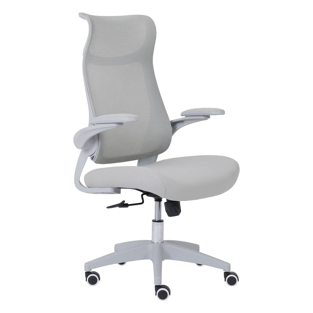 Kancelárska stolička SETON v sivej sieťovine kombinuje štýl a komfort. Ergonomické operadlo a nastaviteľná výška sedenia zabezpečujú oporu a pohodlie pri práci. Sklopné podrúčky a univerzálne kolieska