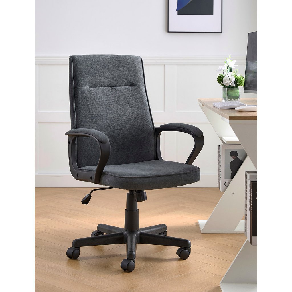 Kancelárska stolička VERA je perfektným spoločníkom pre každodennú prácu, či už v kancelárii alebo doma. S jej elegantným priemyselným dizajnom a kvalitným čalúnením zo šedej látky ponúka nielen estetiku, ale aj skutočný komfort, ktorý oceníte pri dlhom sedení. Tvarované podrúčky s vymäkčenou vrchnou časťou zabezpečujú potrebnú oporu a pohodlie, čo je ideálne pre pracovné dni, ktoré trvajú od rána do večera.