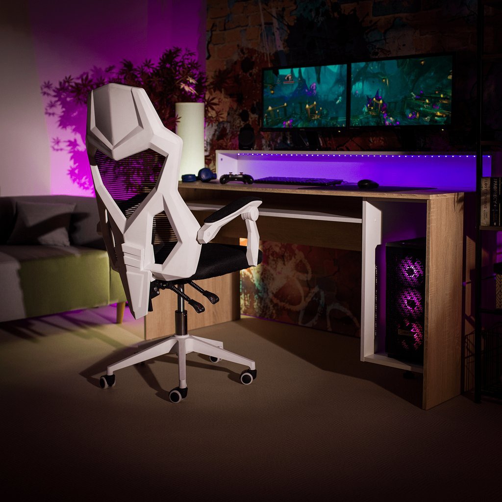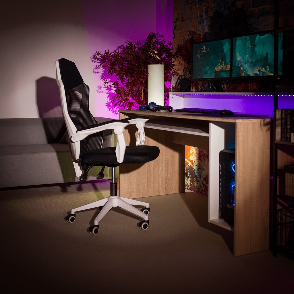 Kancelárska stolička YOKO v čiernobielej kombinácii spojila moderný dizajn s komfortom. Ideálna pre prácu aj hranie, ponúka priedušnú sieťovinu a nastaviteľnú výšku. Stabilná a štýlová!