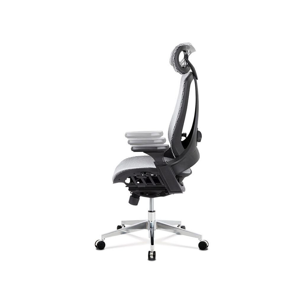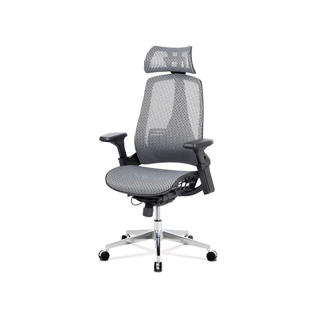 Kancelárska stolička so sivou MESH sieťovinou ponúka moderný dizajn a ergonomické vlastnosti. Nastaviteľné operadlo, sedák a podrúčky zabezpečujú pohodlie pri dlhodobom sedení. Stabilný kovový kríž za