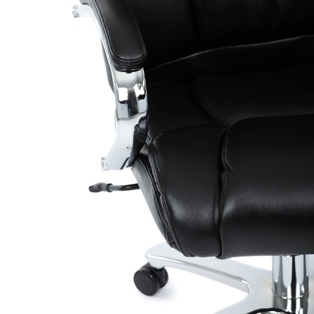 Okrem toho, chrómový kríž zaisťuje stabilitu a dlhú životnosť produktu. Extra veľkosť sedadla ponúka viac priestoru pre pohodlné sedenie a príjemné ponorenie do práce. Vymäkčená vrchná časť podrúčiek poskytuje ďalšiu oporu a komfort pri dlhých hodinách sedenia.