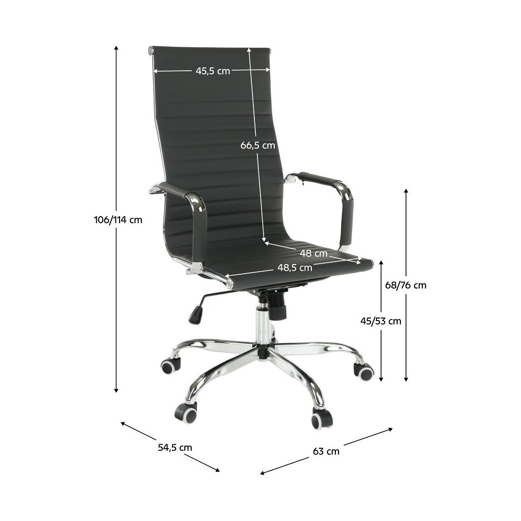 Kancelárske kreslo AZURE v elegantnej čiernej ekokoži je perfektným riešením pre každú modernú kanceláriu alebo pracovne. Jeho nadčasový dizajn a komfortná ergonómia zabezpečia, že sa pri práci budete cítiť príjemne a produktívne. S týmto kancelárskym kreslom získate nielen štýlový doplnok do vašej pracovnej zóny, ale aj kvalitného pomocníka, ktorý vám poskytne oporu počas dlhých hodín sedenia.