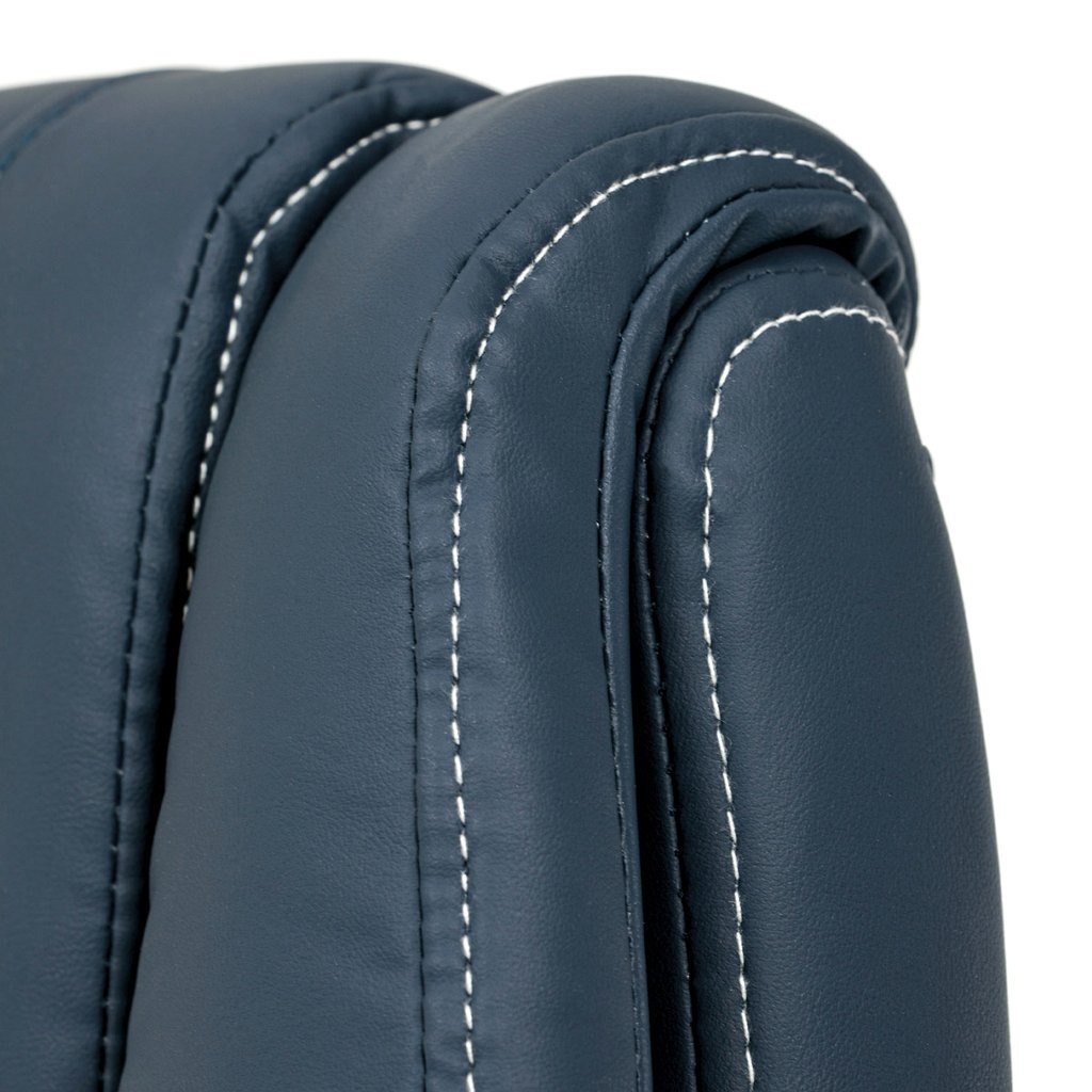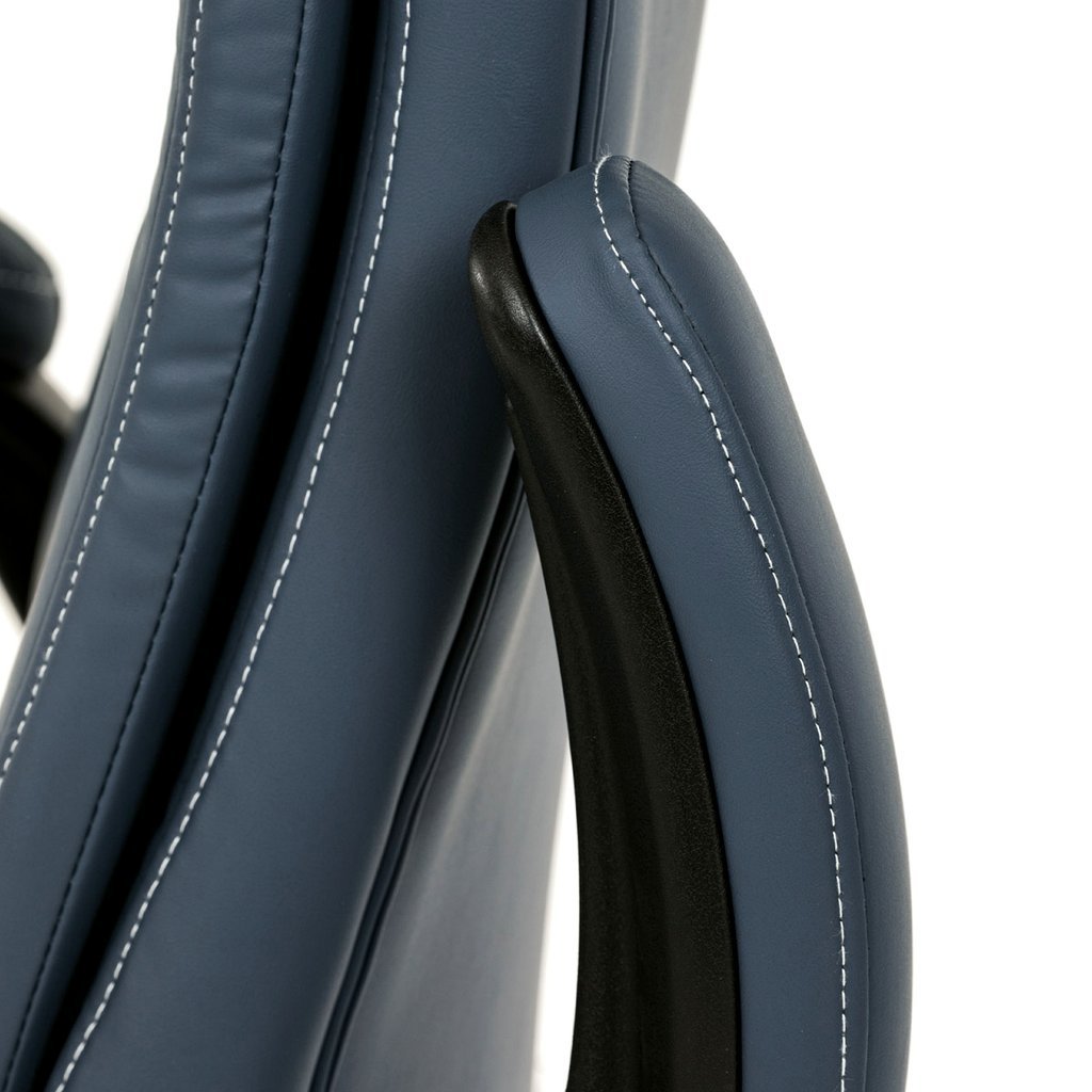 - Čalúnenie z modrej ekokože dodáva kancelárskej atmosfére profesionálny vzhľad.