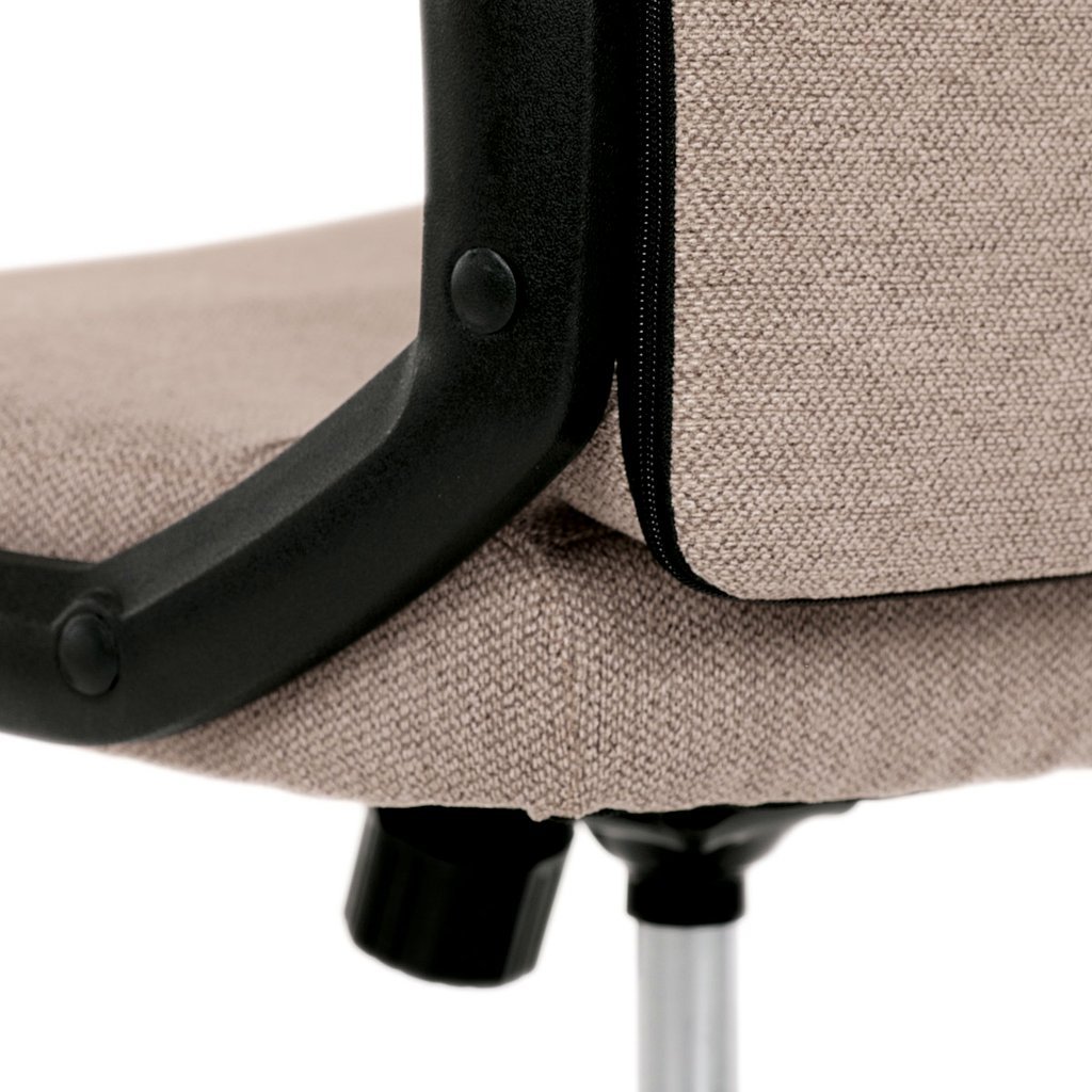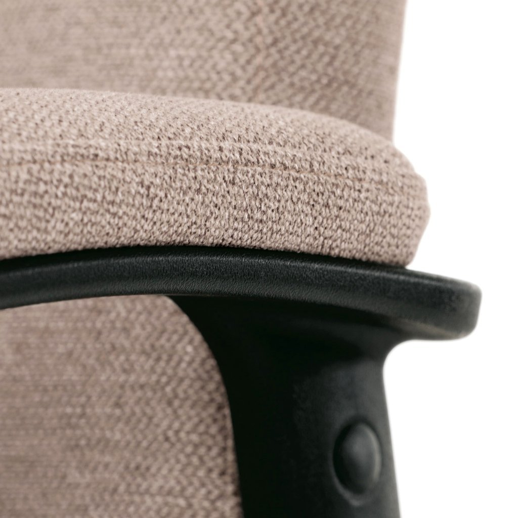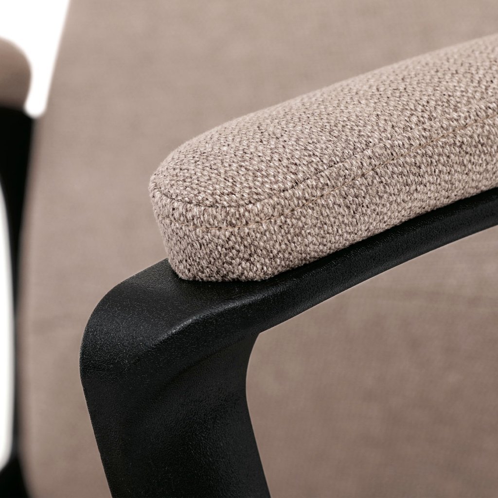 - Kancelárske kreslo je čalúnené príjemnou hnedou látkou, ktorá zaručuje pohodlné sedenie.