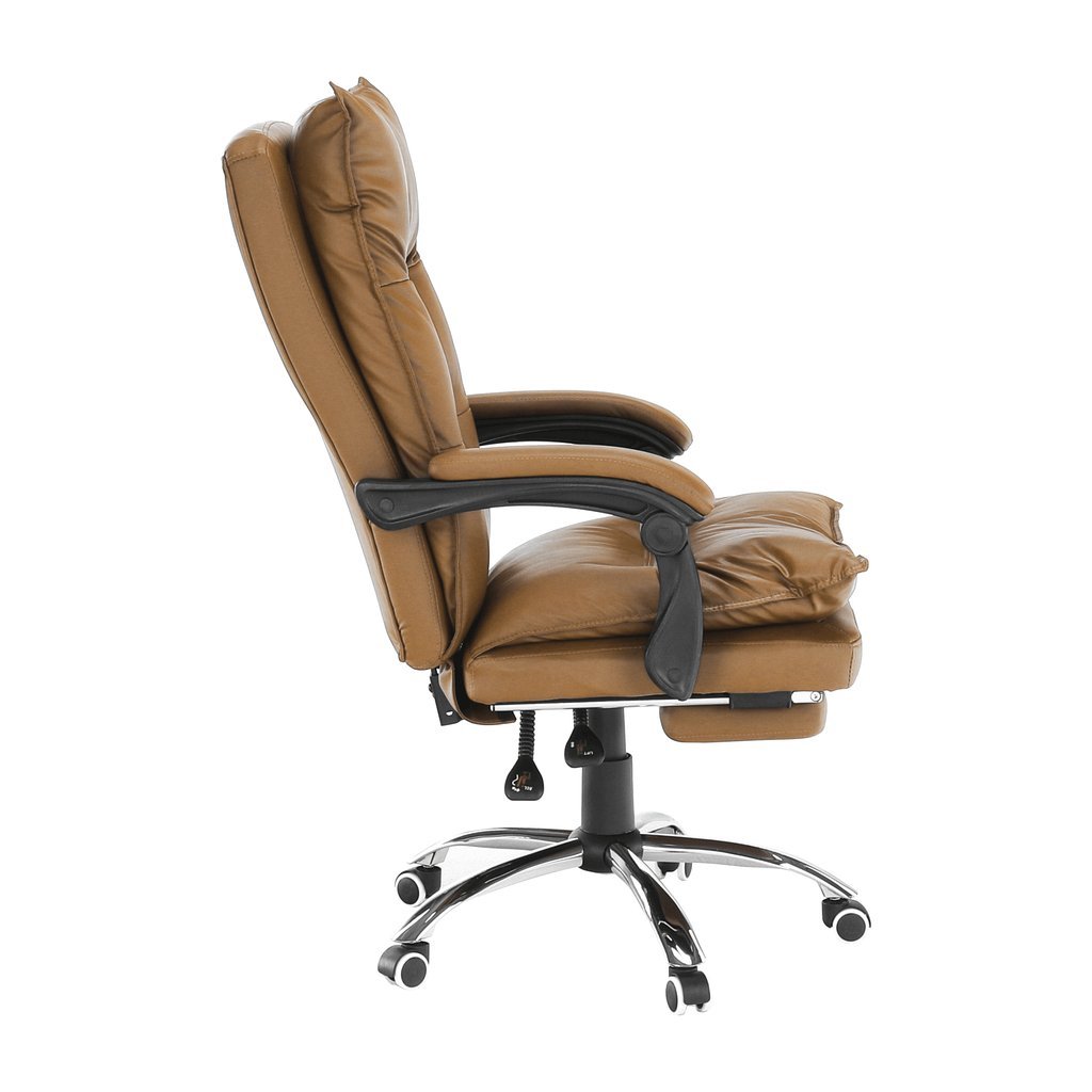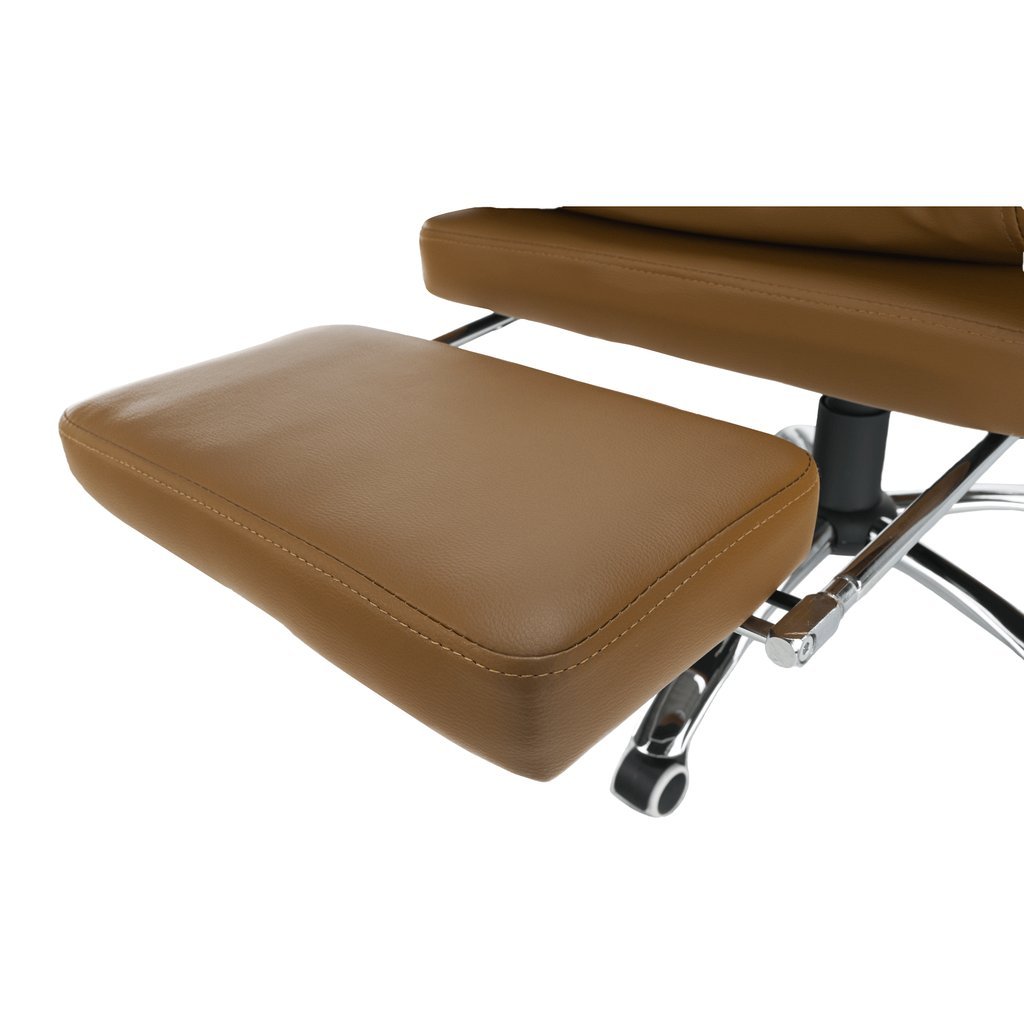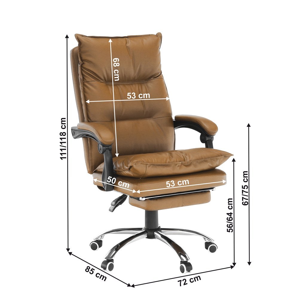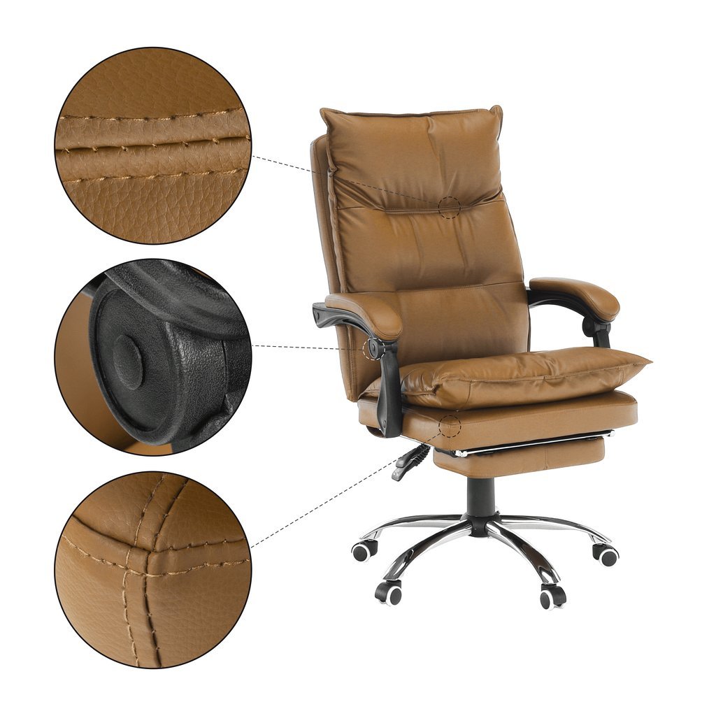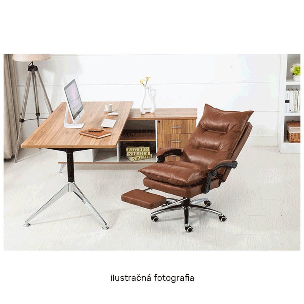 - Elegantný dizajn v hnedej ekokoži s chrómovými prvkami, ktorý sa hodí do každej kancelárie.