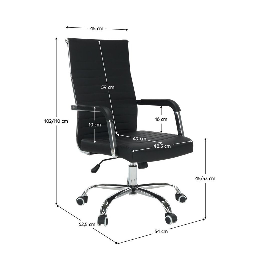 - Moderný dizajn: Elegantný vzhľad v kombinácii čiernej ekokože a chrómového podvozku, ideálne do akéhokoľvek interiéru.
