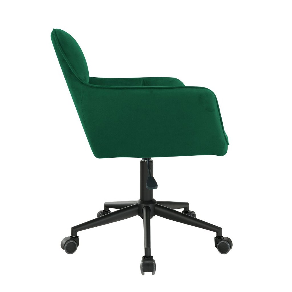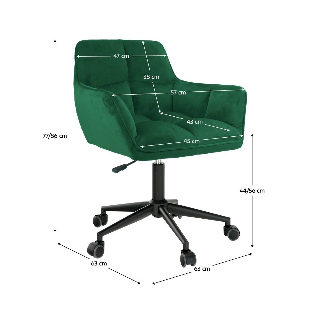 Kancelárske kreslo HAGRID v smaragdovej zamatovej látke dodáva štýl a pohodlie. Robustná kovová podnož s kolieskami a nadýchané čalúnenie zabezpečujú maximálny komfort.