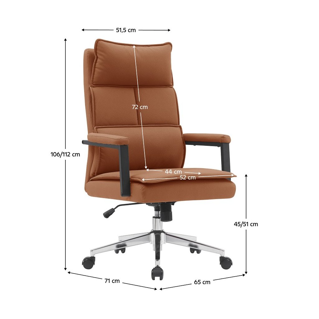 Kancelárske kreslo KAHIL v elegantnej hnedej ekokoži je dokonalým riešením pre každé pracovné prostredie. Jeho moderný dizajn a pohodlné čalúnenie prinášajú nielen estetický zážitok, ale aj praktickosť, ktorú oceníte počas dlhých pracovných hodín.