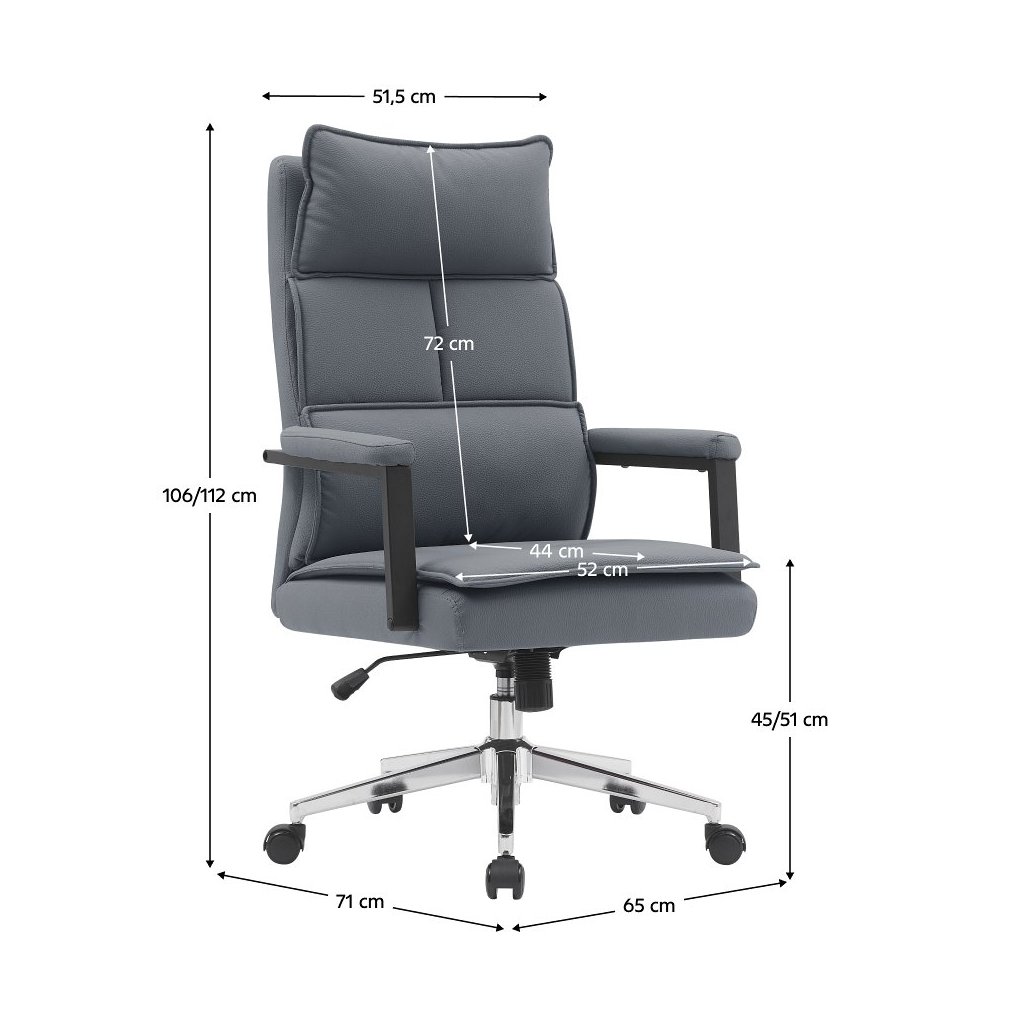 Kancelárske kreslo KAHIL v elegantnej sivé ekokože je ideálnou voľbou pre moderné pracovné prostredie. Jeho štýlový dizajn a praktické vlastnosti zabezpečujú maximálny komfort počas celého dňa stráveného pri práci.