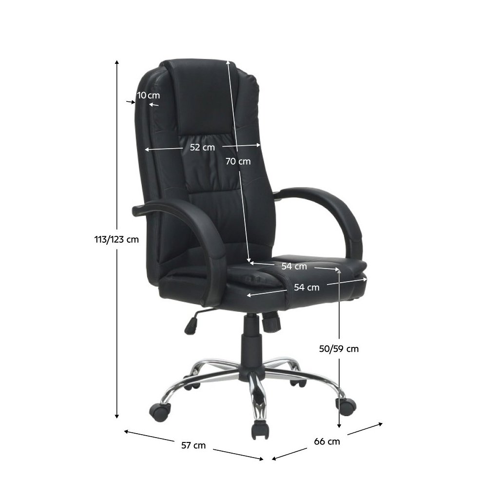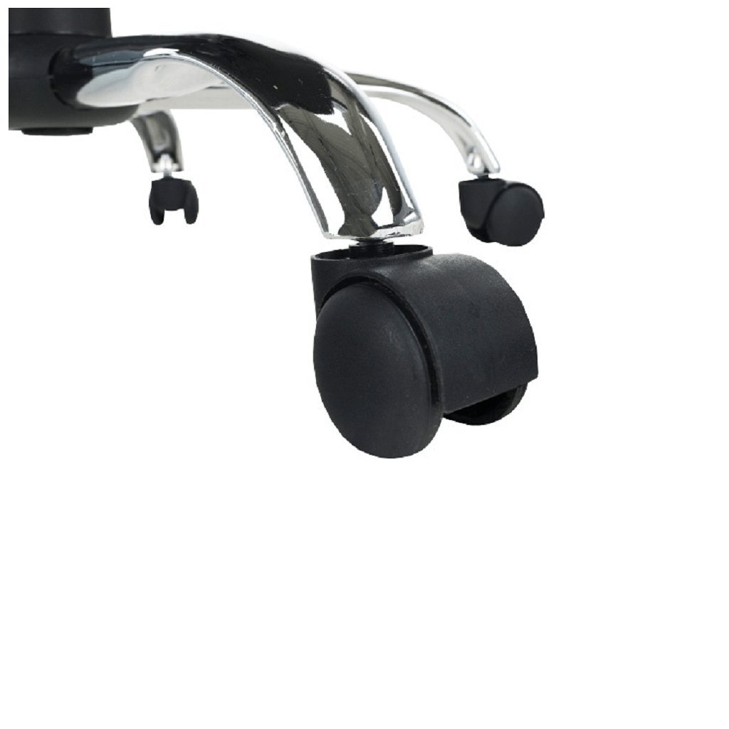 Vyrobené z kvalitnej čiernej ekokože, toto kreslo nielenže skvele vyzerá, ale je aj odolné voči opotrebeniu. Stabilná kovová chrómovaná päťcípa ružica zabezpečuje vysokú stabilitu a bezpečnosť, pričom čalúnené plastové opierky pridávajú na komforte.
