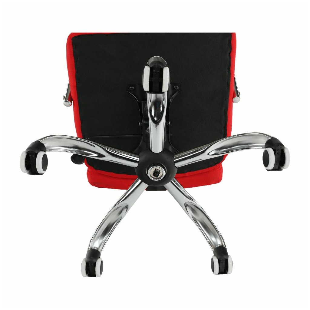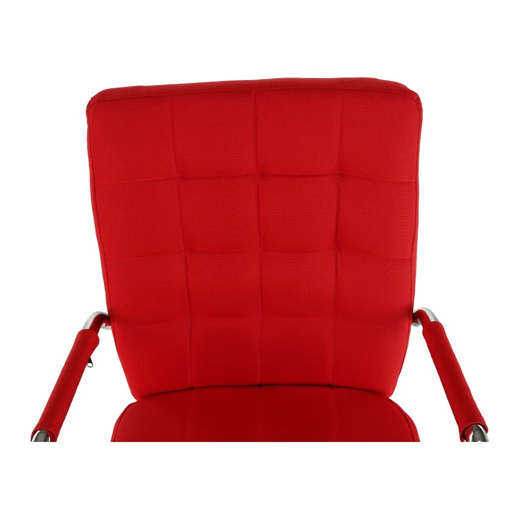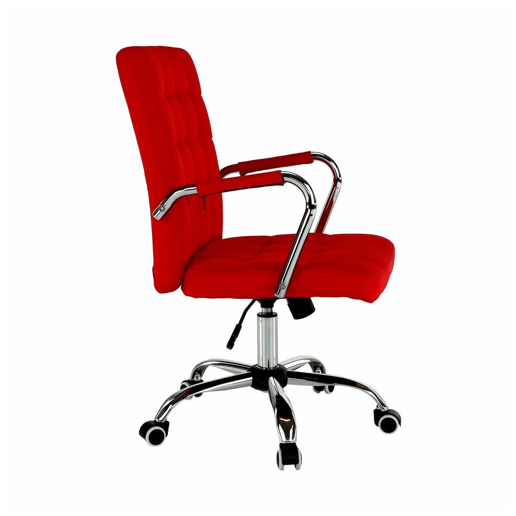 Moderné kancelárske kreslo MORGEN v červenej látke spája štýlový dizajn s pohodlím. Chrómová podstava a pogumované kolieska zabezpečujú stabilitu na všetkých podlahách.