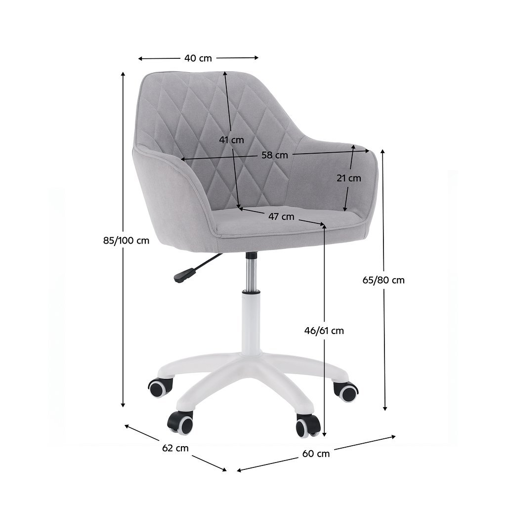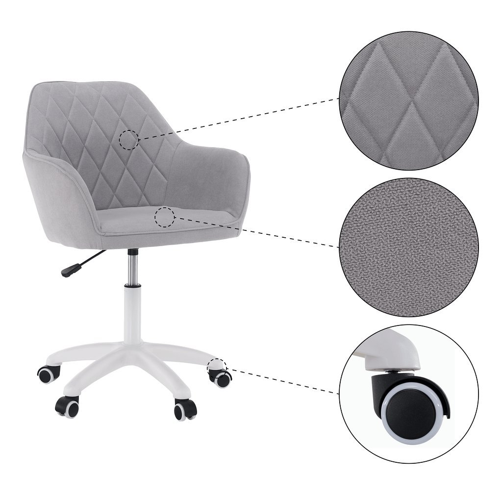 Čalúnenie v príjemnej sivé látke je nielen estetické, ale aj praktické. Stabilná kovová konštrukcia v bielej farbe zaručuje dlhú životnosť a odolnosť, zatiaľ čo pogumované kolieska umožňujú bezproblémový pohyb po miestnosti. S Kreslom SANTY si užijete pohodlie a štýl v jednom.