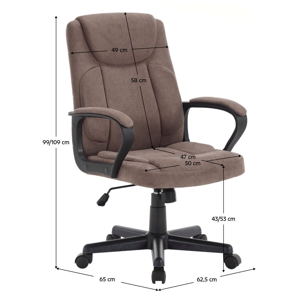 - Elegantný dizajn: Hnedá látka dodáva kancelárskemu kreslu sofistikovaný vzhľad, ktorý sa hodí do každého interiéru.