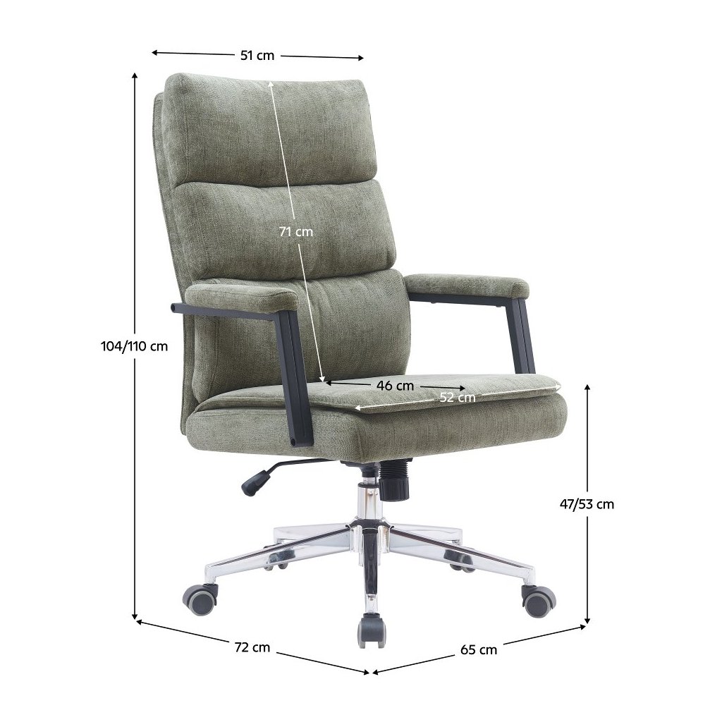 Objavte dokonalé spojenie moderného dizajnu a pohodlia s kancelárskym kreslom ZAVIER. Toto elegantné kreslo je čalúnené kvalitnou zelenou látkou, ktorá dodáva vášmu pracovnému prostrediu svieži nádych. Kancelárske kreslo ZAVIER je ideálnym doplnkom pre každú kanceláriu alebo pracovňu, kde je potrebné udržiavať produktivitu a pohodlie počas celého dňa.