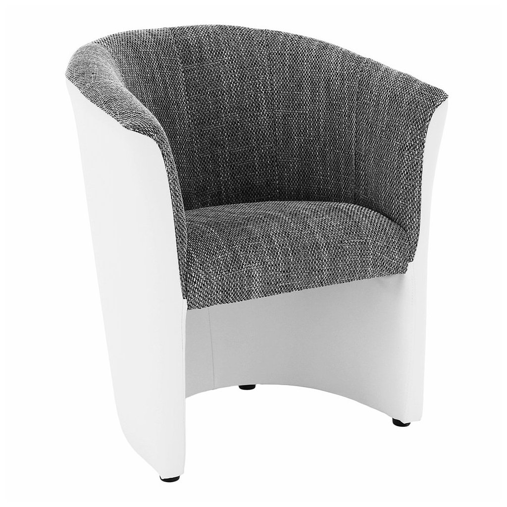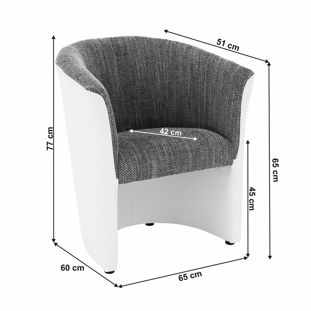 Klubové kreslo CUBA v kombinácii bielej ekokože a šedého šenilu ponúka komfortné sedenie s výškou 45 cm a hĺbkou 42 cm. Rozmery: 65x60x77 cm, hmotnosť 12,5 kg.