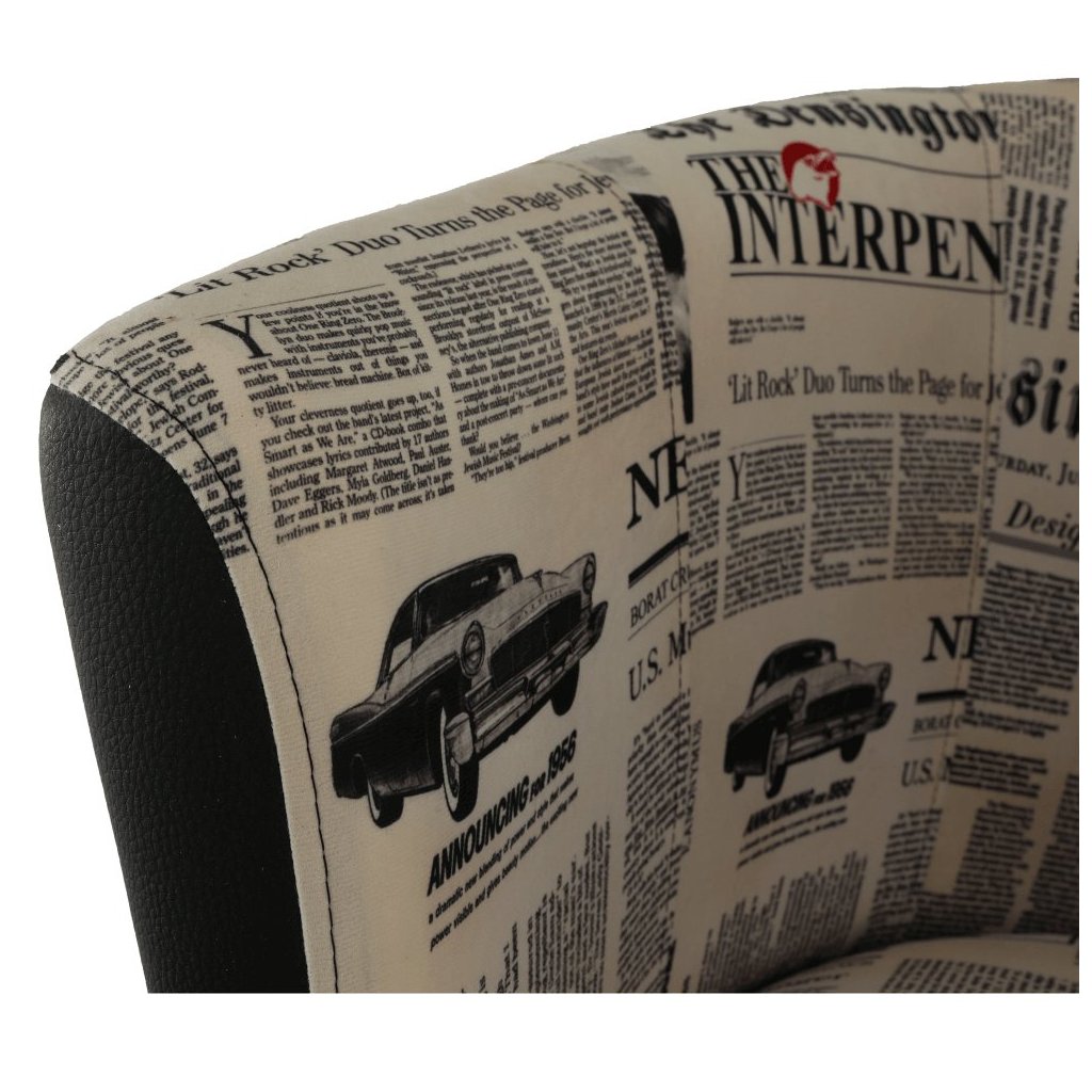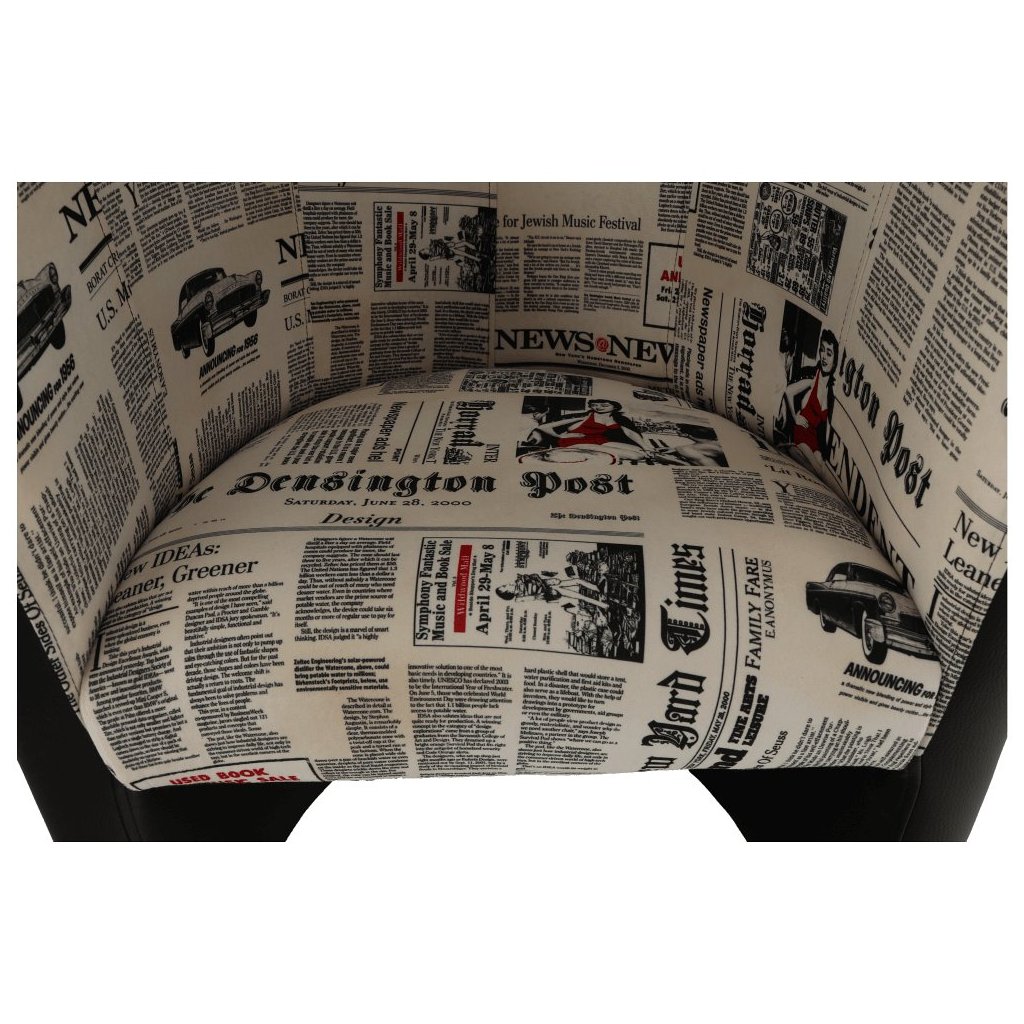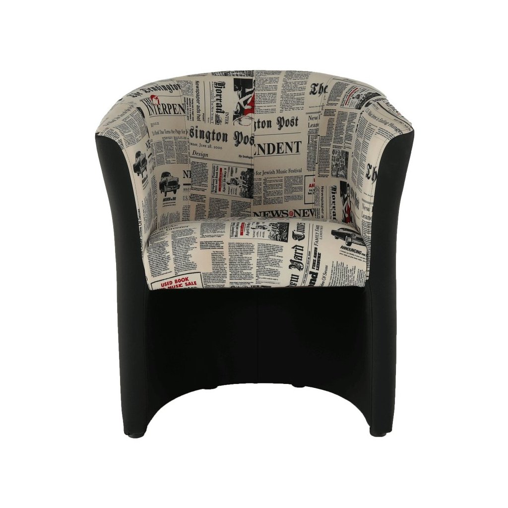 Klubové kreslo CUBA v čiernej ekokoži s originálnym vzorom novín oživí váš interiér. Praktické, pohodlné a s purpenovým jadrom, ponúka skvelé sedenie. Rozmery: 65x60x77 cm.