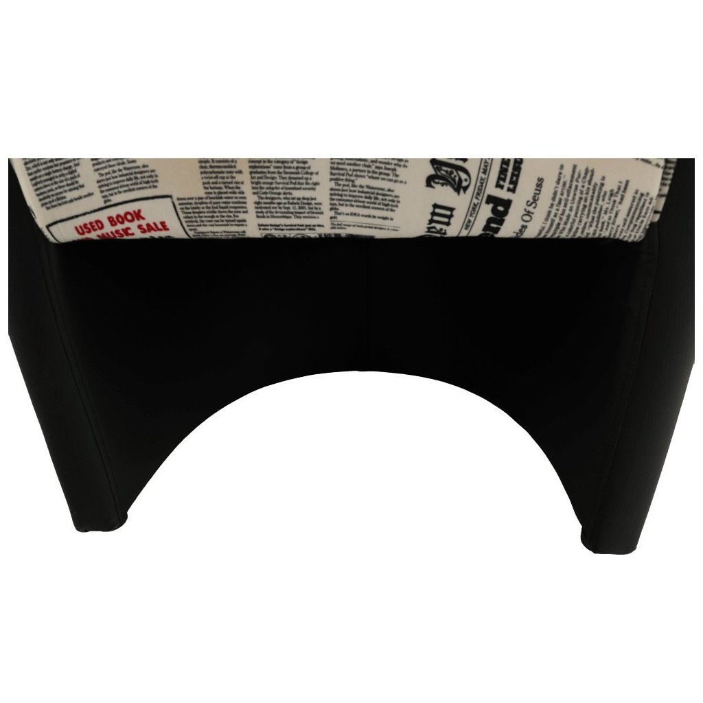 - Elegantný dizajn: Kombinácia čiernej ekokože a látky s vzorom novín vytvára unikátne a moderné vzhľad.