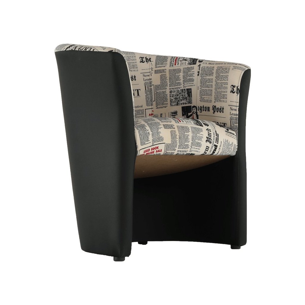 Klubové kreslo - CUBA, Čierna ekokoža / látka, Noviny