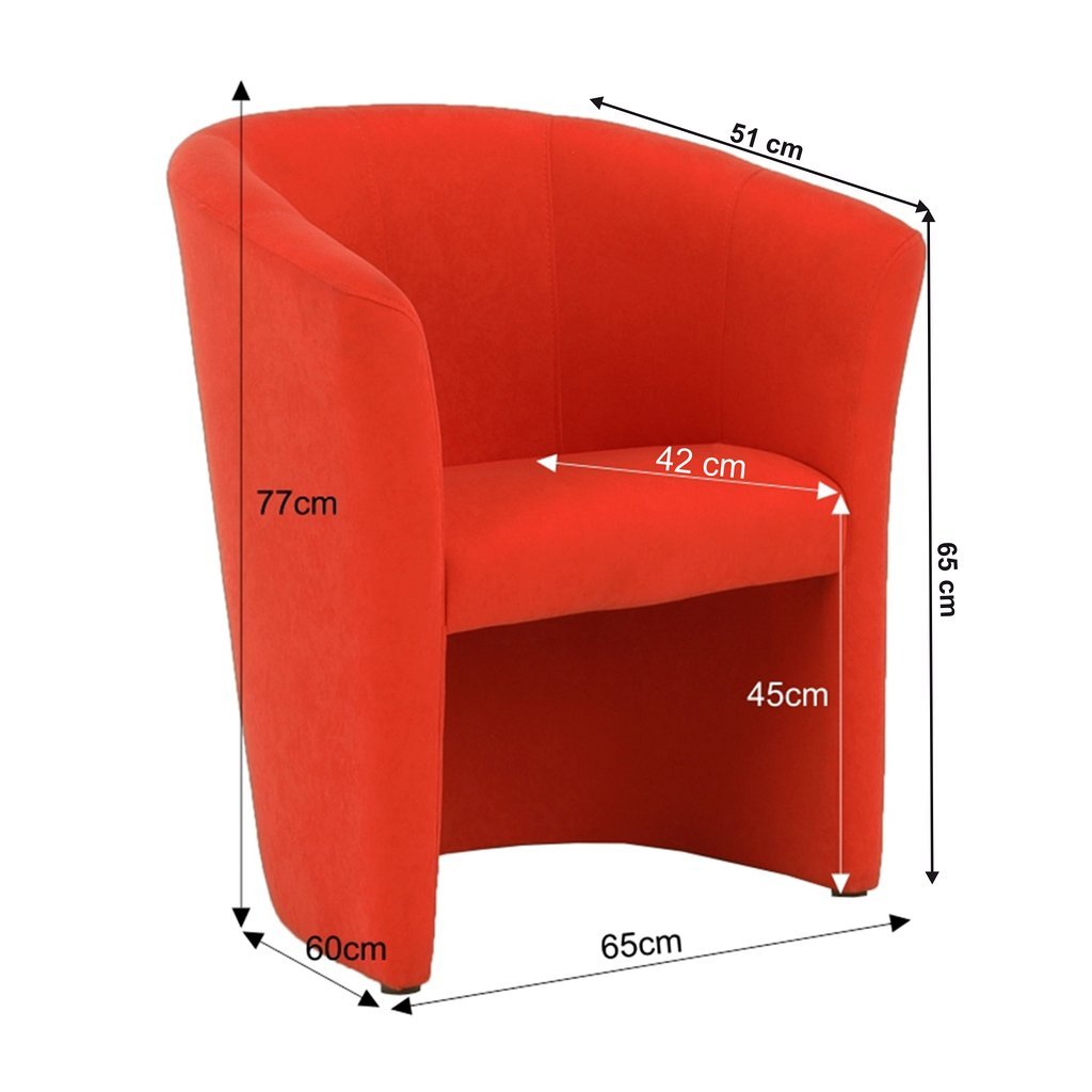 Kreslo CUBA v žiarivej oranžovej semišovej látke oživí váš interiér a pridá mu eleganciu. S pohodlným sedením a moderným dizajnom je ideálnym doplnkom vášho domova. Rozmery: 65x60x77 cm.