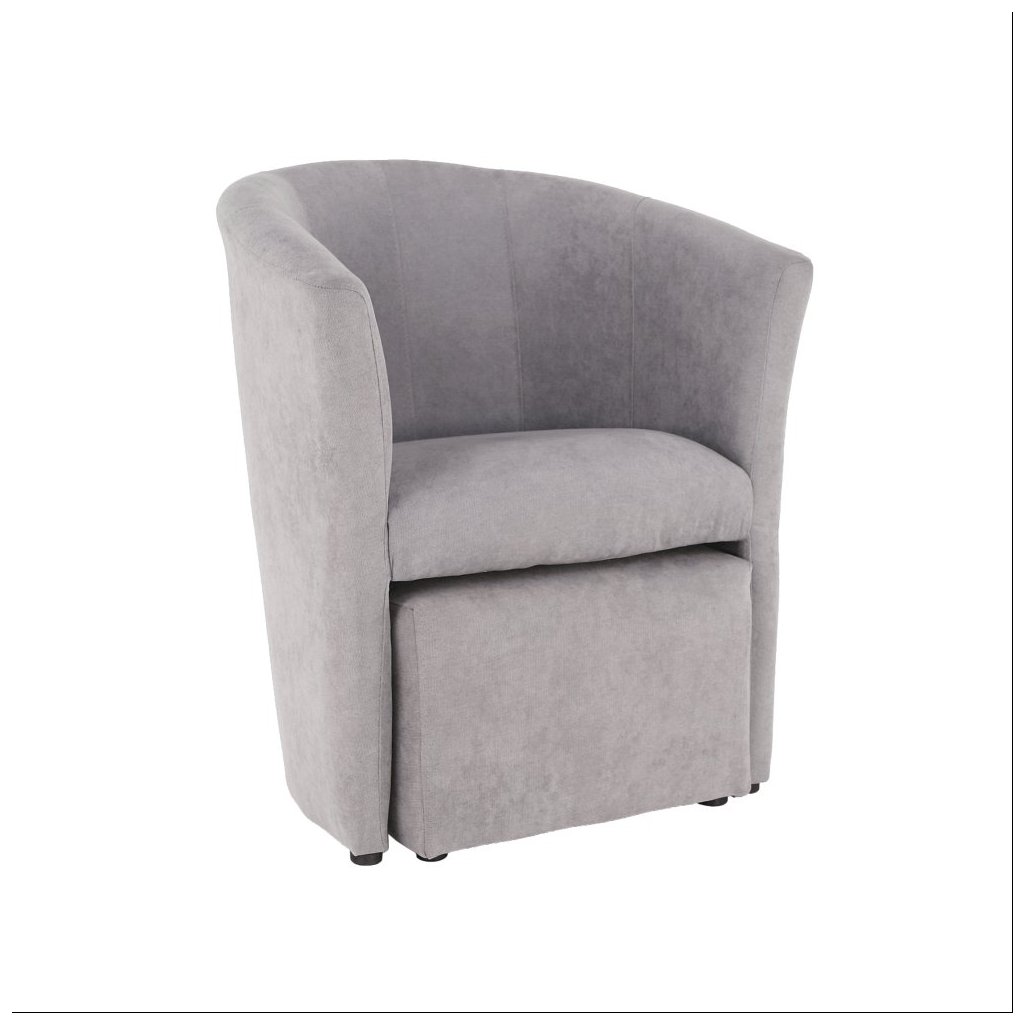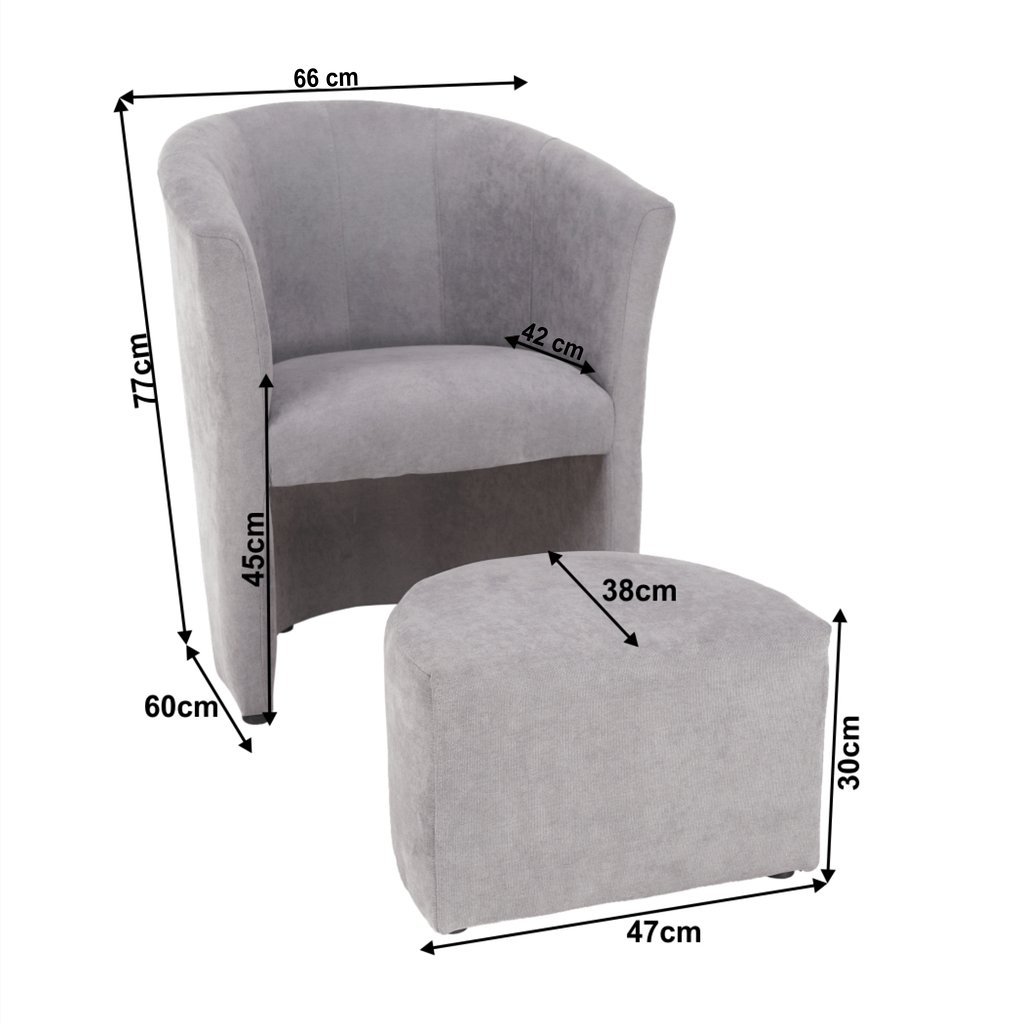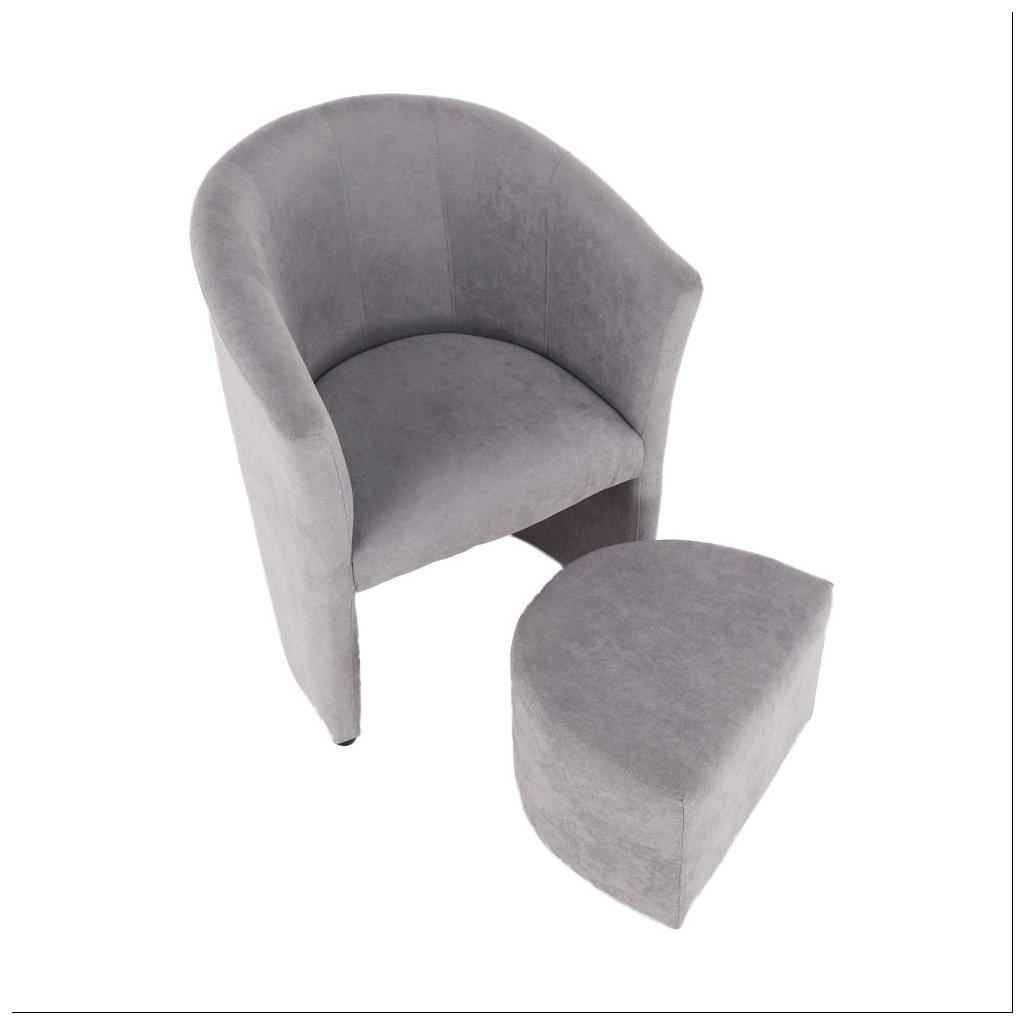 Klubové kreslo ROSE v sivej látke je elegantným doplnkom vášho interiéru. Celočalúnené s praktickým taburetom, ktorý môžete zasunúť pod kreslo. Nosnosť 120 kg, rozmery 65x60x77 cm.