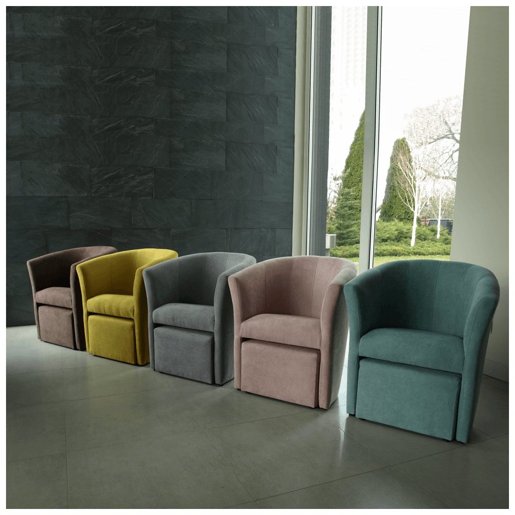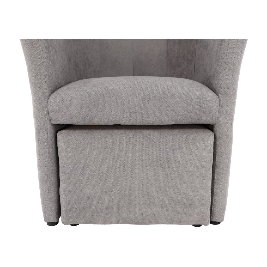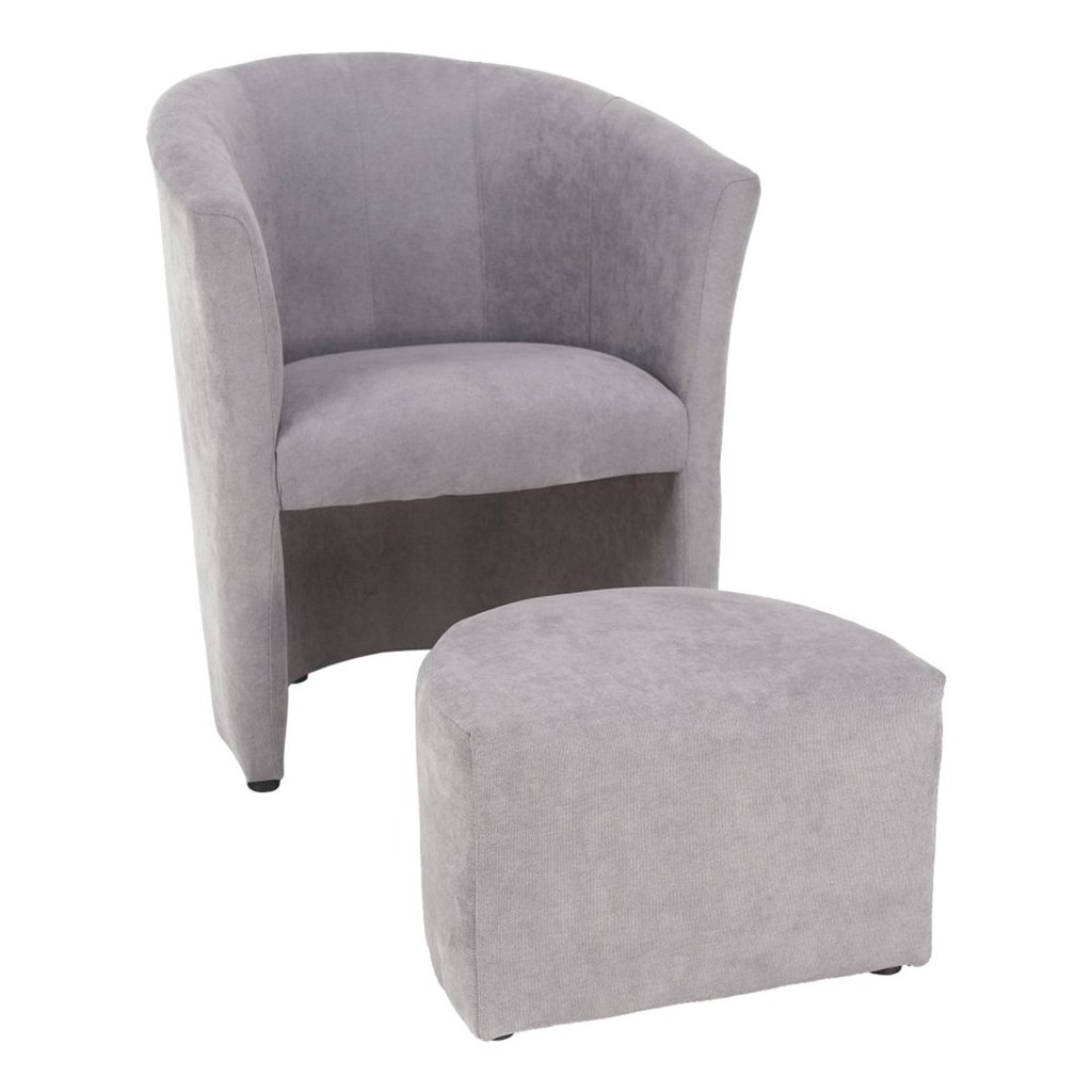 Klubové kreslo ROSE v sivej látke je elegantným doplnkom vášho interiéru. Celočalúnené s praktickým taburetom, ktorý môžete zasunúť pod kreslo. Nosnosť 120 kg, rozmery 65x60x77 cm.