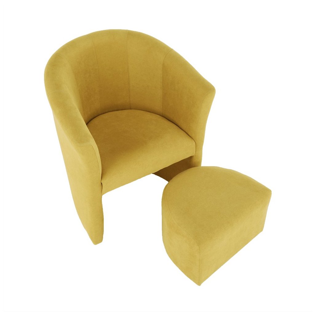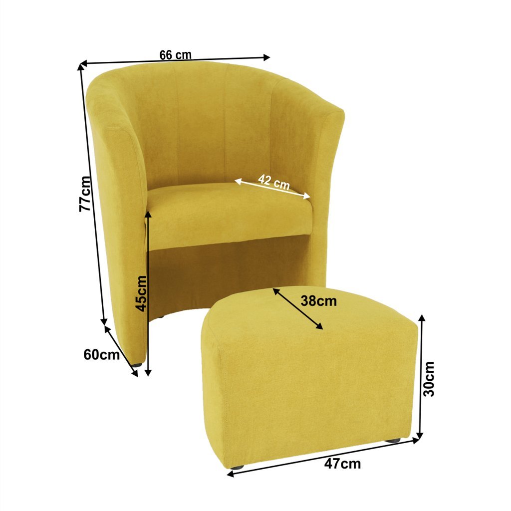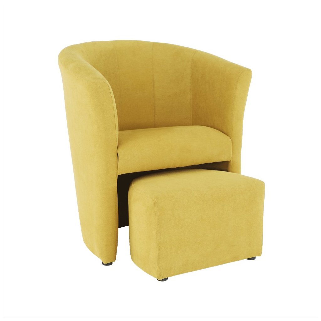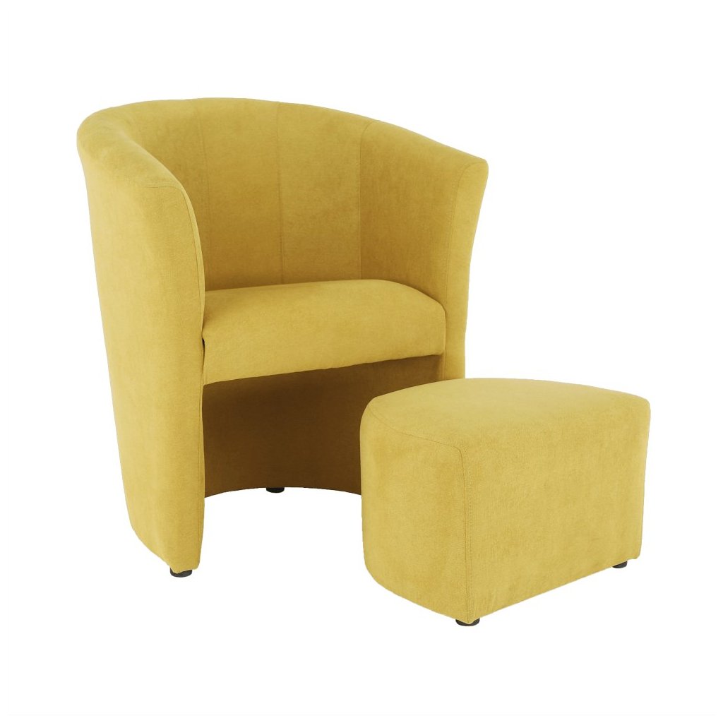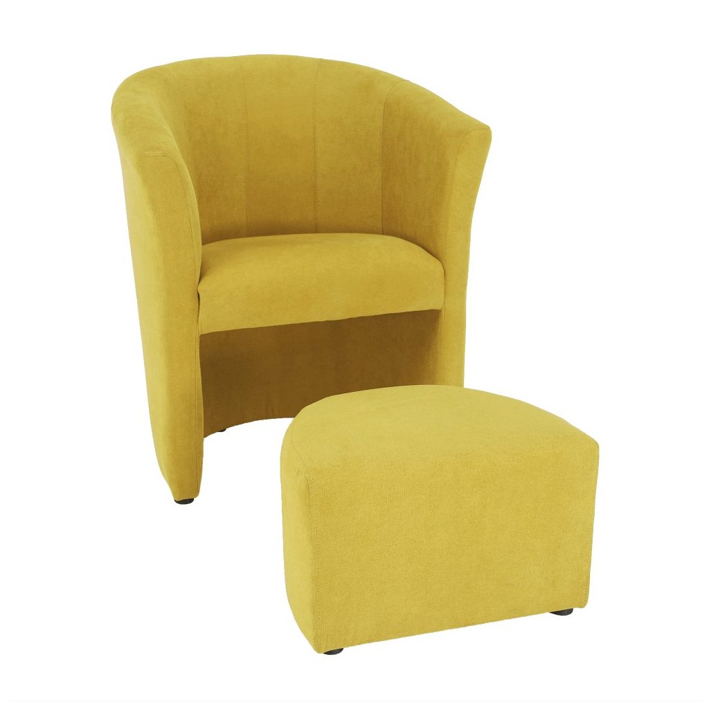 Klubové kreslo ROSE v žltej látke je elegantným doplnkom do vášho interiéru. S prispôsobeným taburetom, ktorý sa dá zasunúť pod kreslo, šetrí priestor. Materiál: látka Soro. Rozmery: kreslo 65x60x77 c