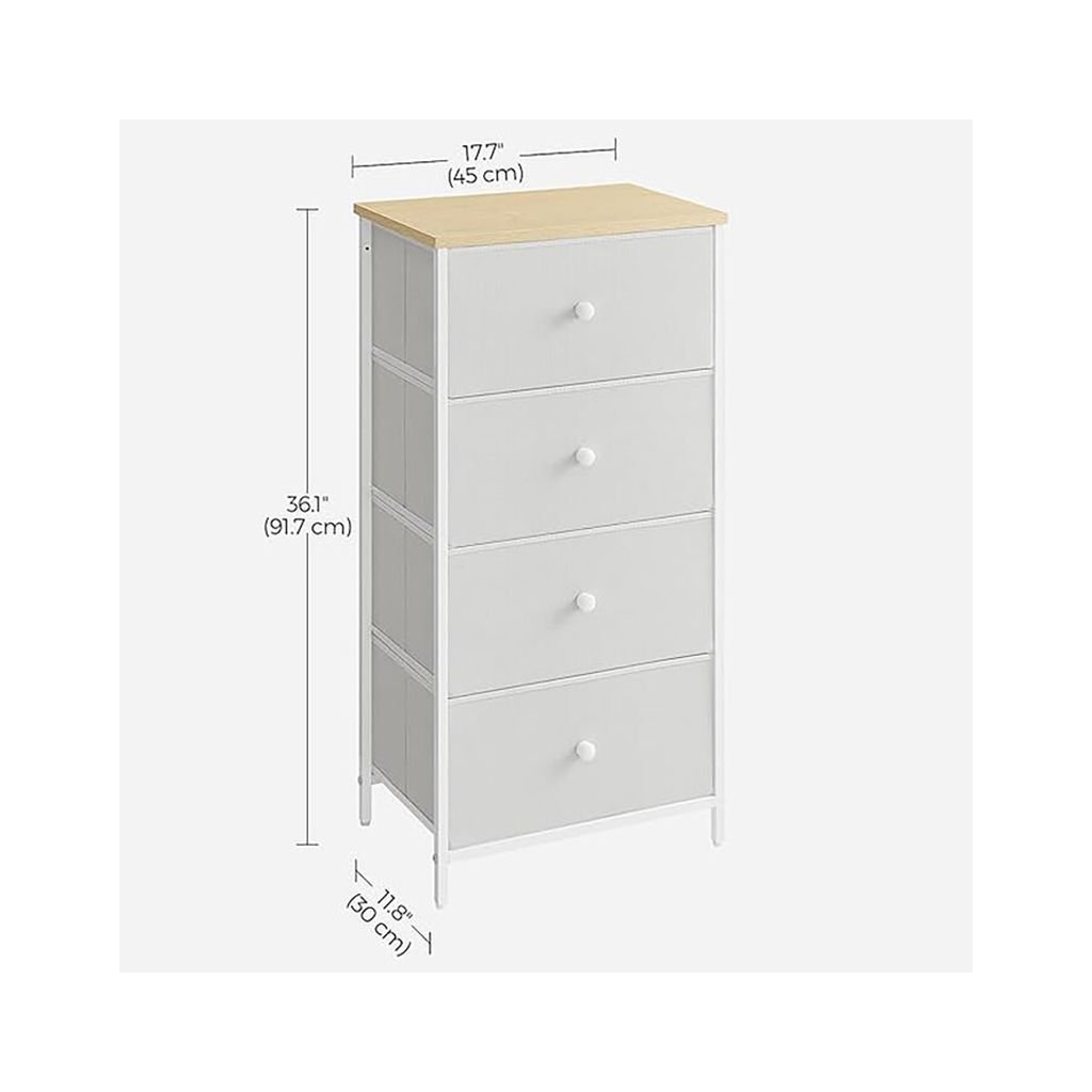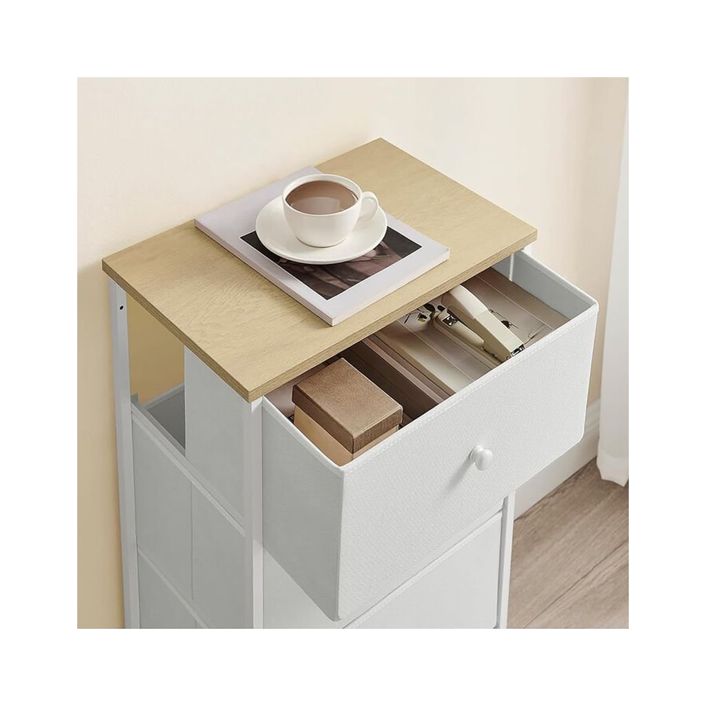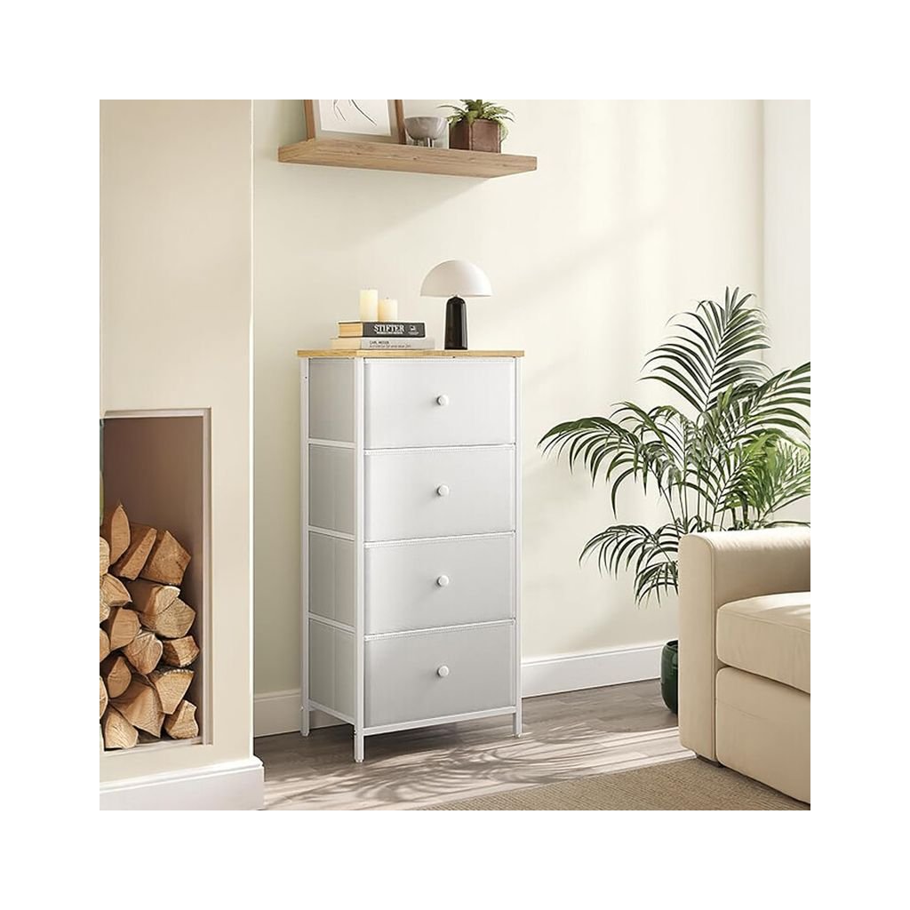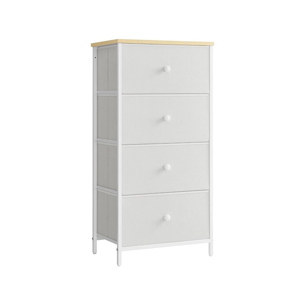 Komoda HLOKI v bielej farbe ponúka praktický úložný priestor s rozmermi 45x30x92 cm. Vyrobená z MDF dosiek s matným povrchom a stabilnou kovovou podnožou. Štyri látkové zásuvky umožňujú flexibilné usk