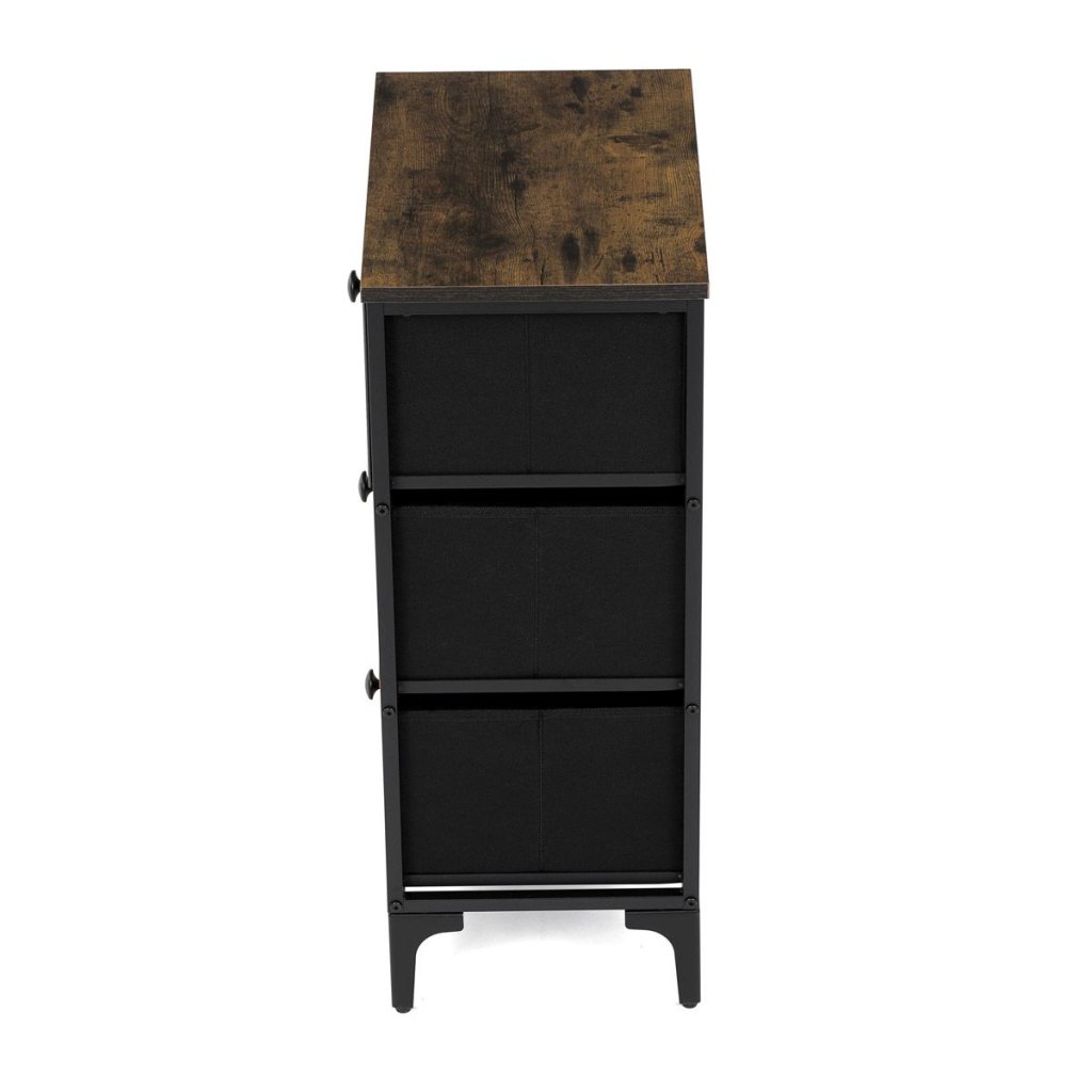 - Elegantná čierna kovová konštrukcia s vintage prvkami dodáva komode štýlový vzhľad.