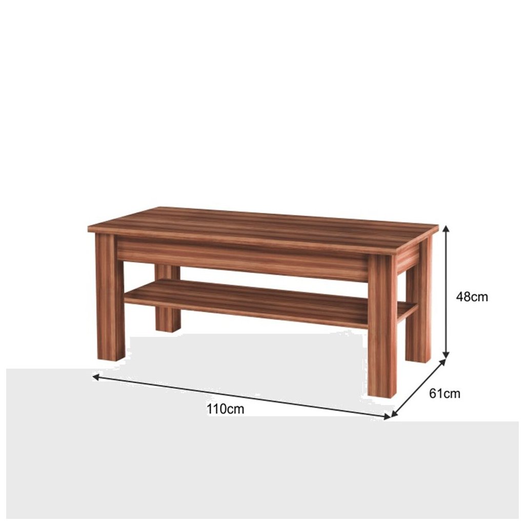 Vyrobený z kvalitného laminovaného DTD materiálu, tento stolík je nielen vizuálne príťažlivý, ale aj odolný voči bežnému opotrebovaniu. Jeho minimalistické línie a nadčasová farba prinesú do vášho domova štýlovú atmosféru.