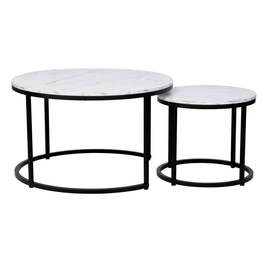 Set moderných konferenčných stolíkov CIRKO v bielo-čiernej kombinácii. Väčší stolík s priemerom 80 cm a menší s 48 cm sú ideálne na zasunutie. Stabilná konštrukcia s nosnosťou 40 kg. Dodávané v demont