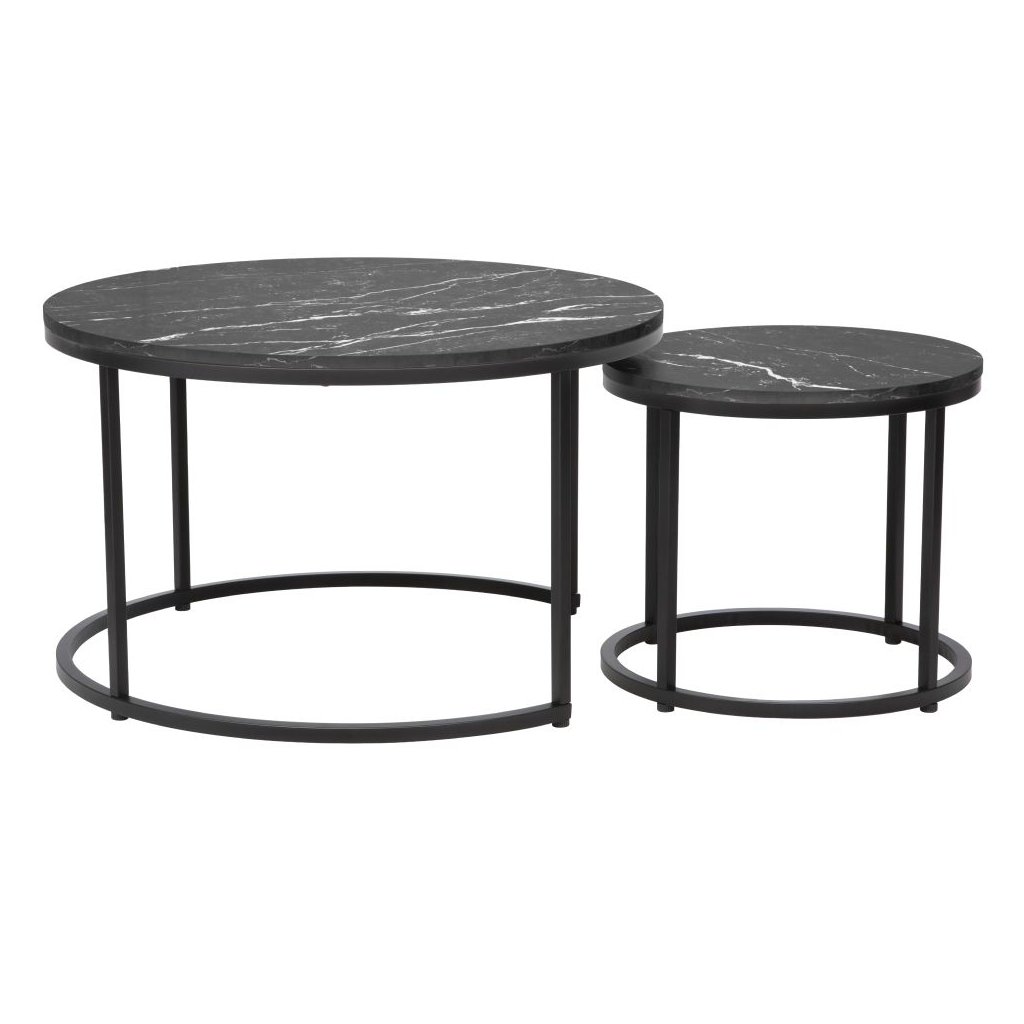 Set dvoch okrúhlych konferenčných stolíkov v tmavosivej a čiernej farbe. Väčší stolík má priemer 80 cm, menší 48 cm. Moderný dizajn, praktické zasunutie. Dodávané v demonte.