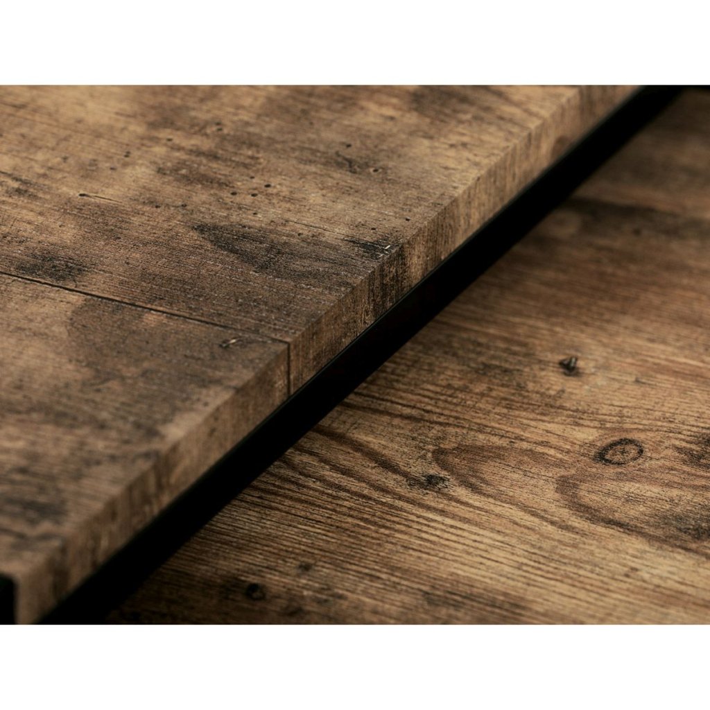 - Industriálny dizajn: Kombinácia MDF dosiek v dekore starého dreva a čiernej kovovej konštrukcie vytvára moderný a elegantný vzhľad.