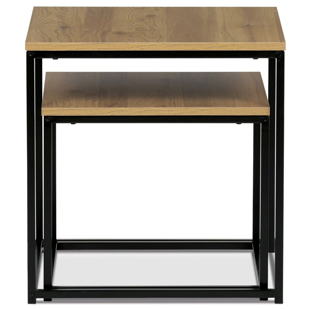 Stolíky sú vyrobené z robustného MDF s dekorom divokého duba, ktorý vytvára príjemnú atmosféru. Ich čierne kovové nohy dodávajú stabilitu a zároveň prispievajú k industriálnemu štýlu, ktorý je v súčasnosti veľmi obľúbený.