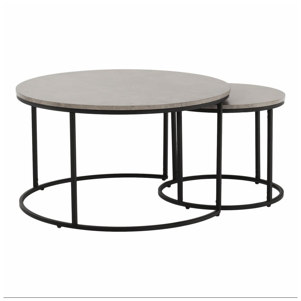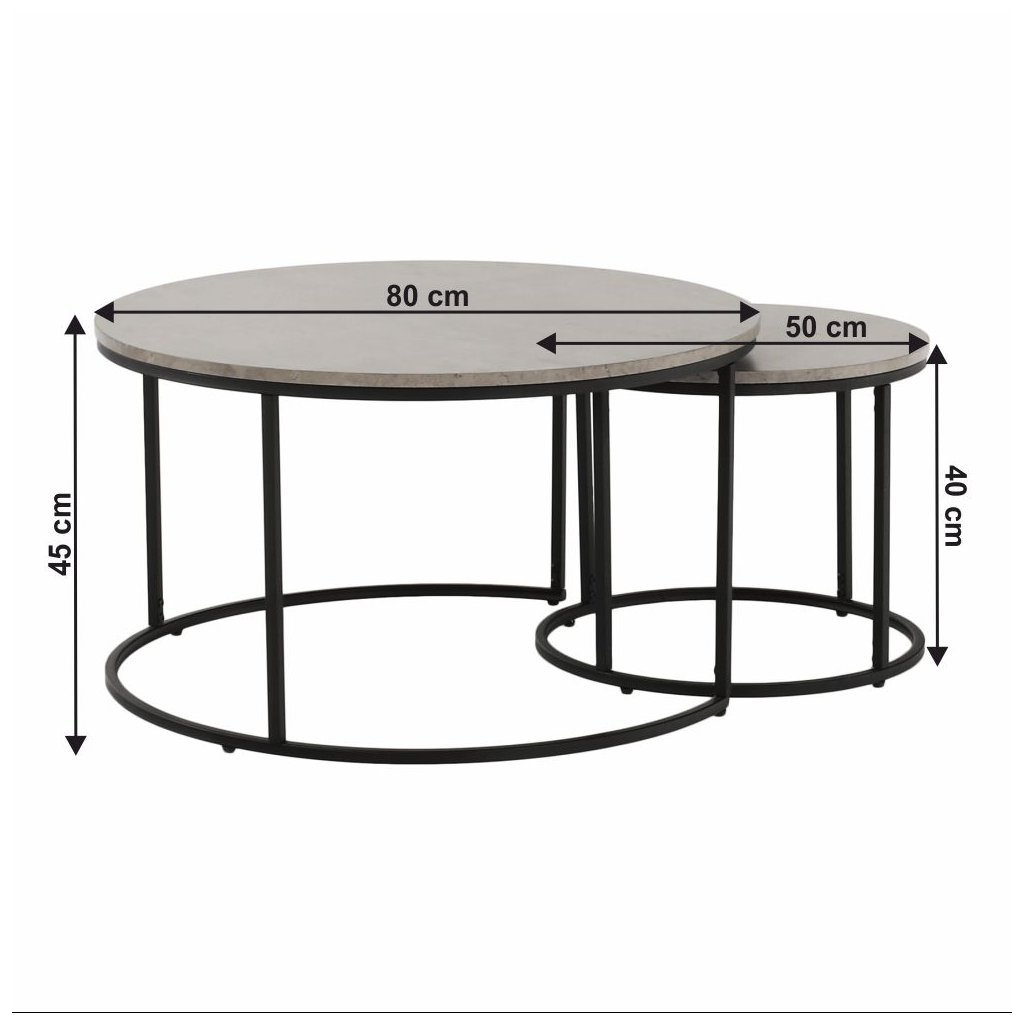 Set dvoch konferenčných stolíkov IKLIN v betónovo-čiernom prevedení. Vyrobené z MDF a kovu, väčší stolík má priemer 80 cm, menší 50 cm. Nosnosť 30 kg, dodávané v demonte.