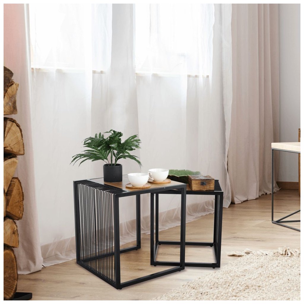 Set obsahuje dva stolíky v rôznych veľkostiach, čo vám umožňuje flexibilne usporiadať priestor. Či už ich použijete na servírovanie nápojov, alebo ako dekoratívny prvok, stolíky RIMBO splnia vaše očakávania.