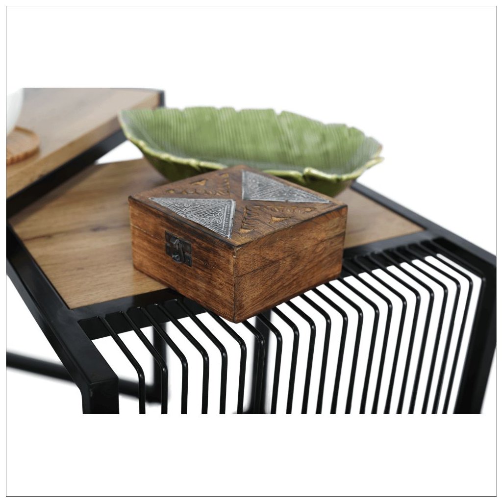 Konferenčné stolíky RIMBO sú ideálnym doplnkom pre váš obývací priestor. Ich moderný dizajn a praktické prevedenie zabezpečujú, že sa hodia do rôznych interiérových štýlov. S kombináciou dubovej farby a čierneho kovu, tieto stolíky sú nielen funkčné, ale aj esteticky príťažlivé.
