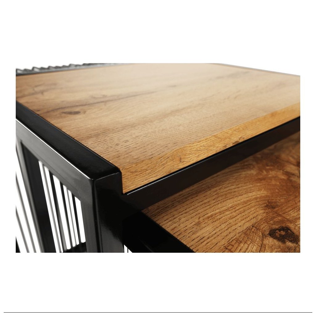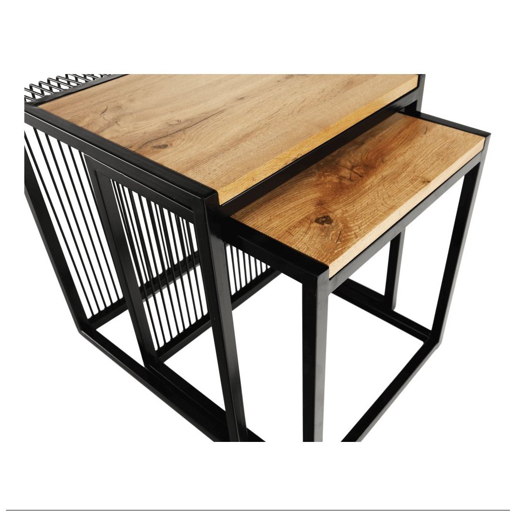 Set dvoch konferenčných stolíkov RIMBO v kombinácii dubu a čierneho kovu ponúka moderný dizajn a praktické rozmery. Ideálne do obývačky, dodá vašemu interiéru štýlový nádych. Dodávané v demonte.
