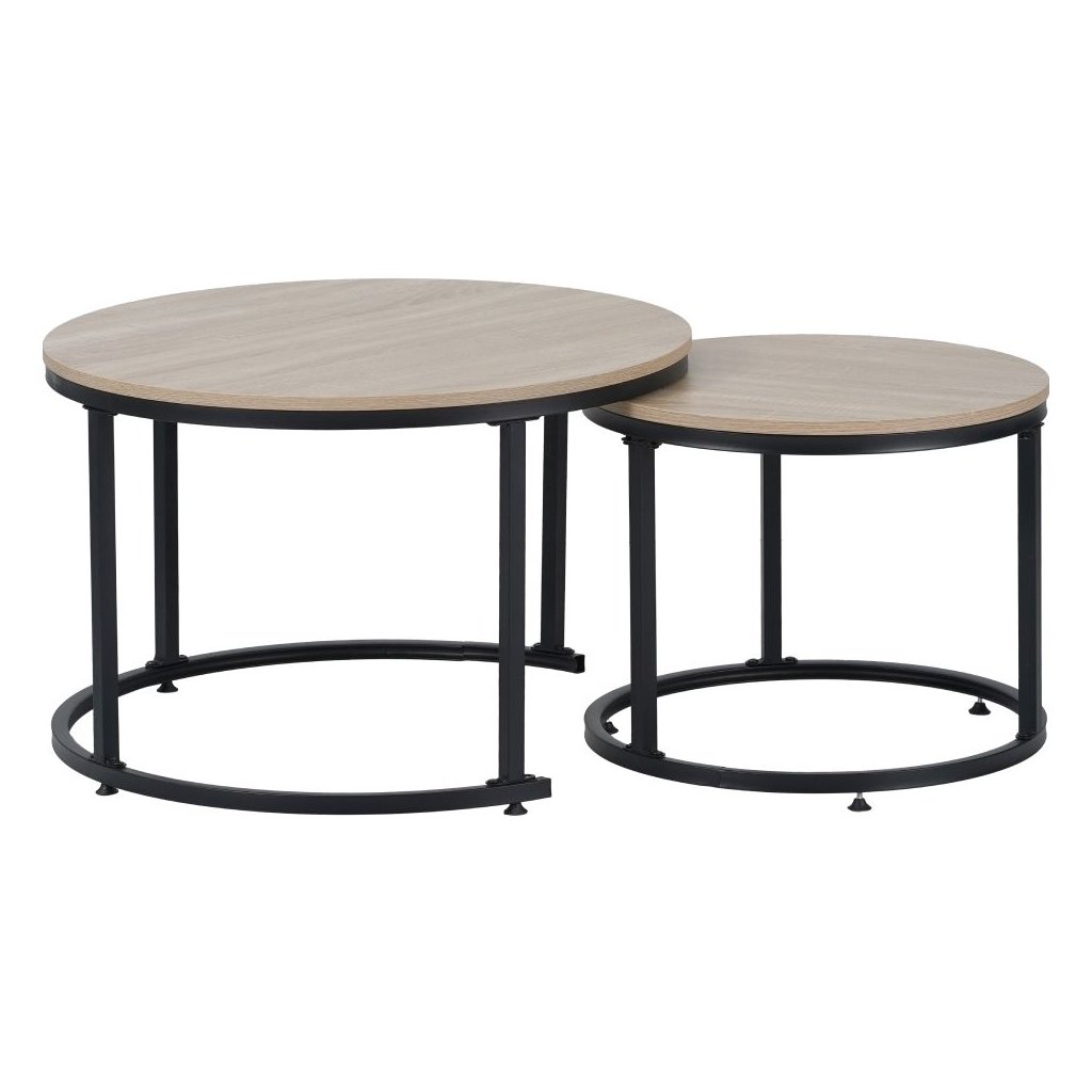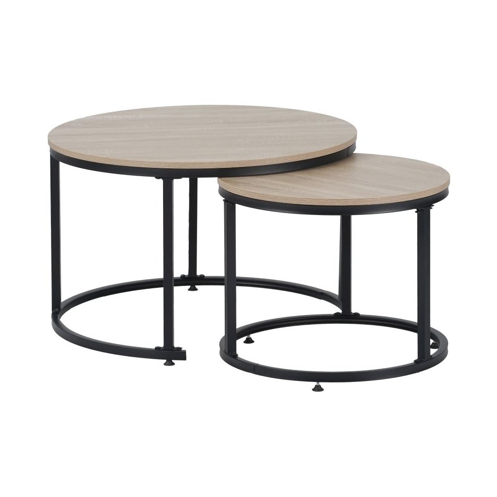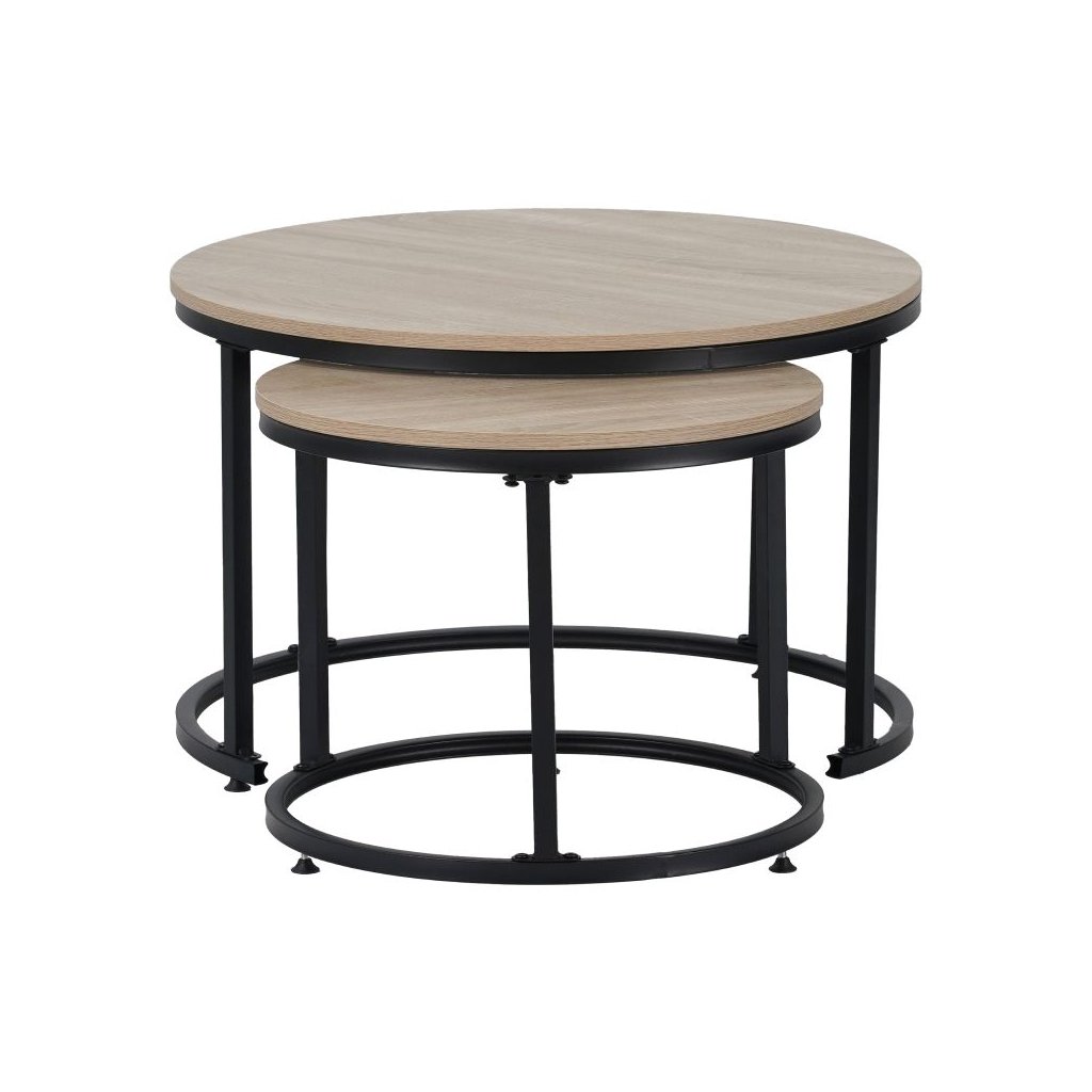 Vďaka kombinácii laminovanej MDF a kovu sú stolíky nielen esteticky príjemné, ale aj odolné. Okrúhly tvar dodáva priestoru jemnosť a zaujímavý vzhľad, zatiaľ čo robustná konštrukcia zabezpečuje nosnosť až 30 kg, čo ich robí ideálnymi pre každodenné použitie.