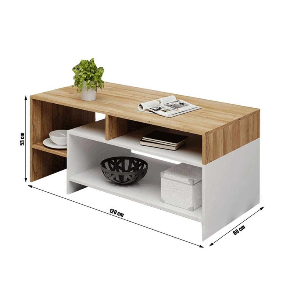 Konferenčný stolík ALICANTE v kombinácii dub grandson a biela ponúka moderný dizajn a praktický úložný priestor. Rozmery 120x60x53 cm, hrúbka materiálu 16 mm. Dodávané v demonte.